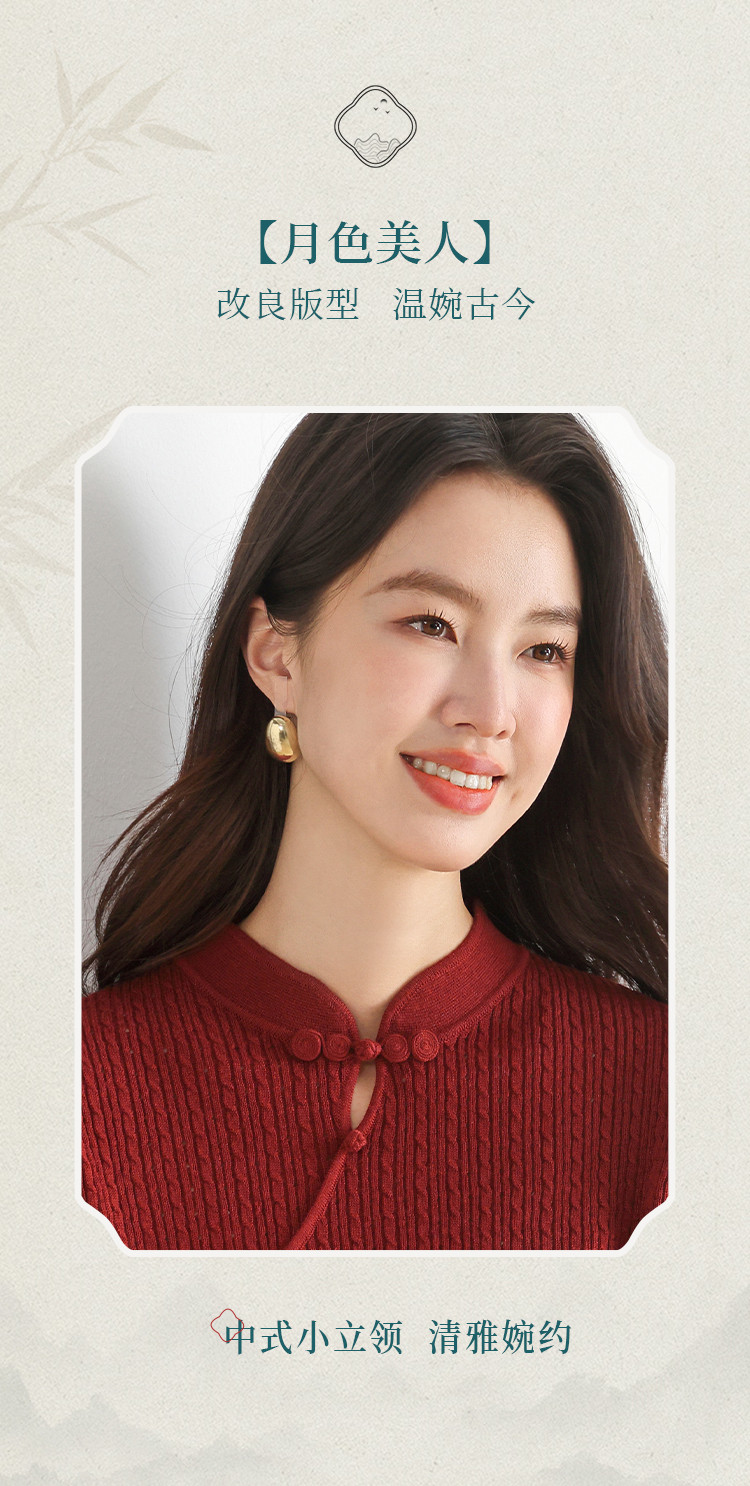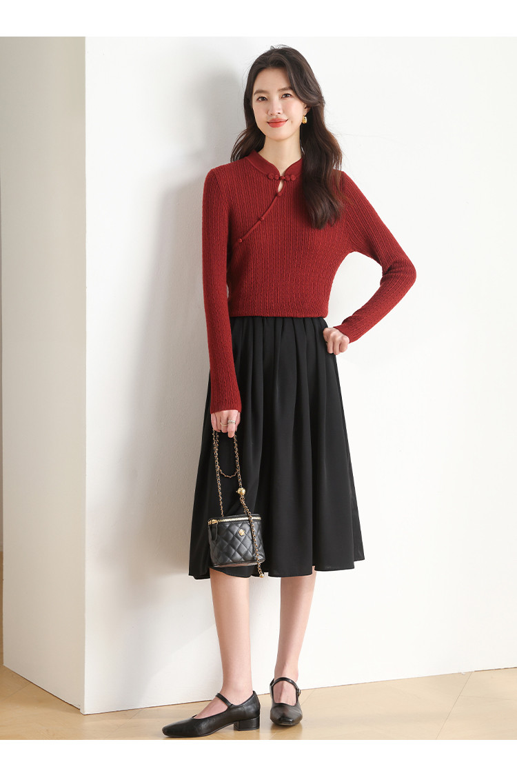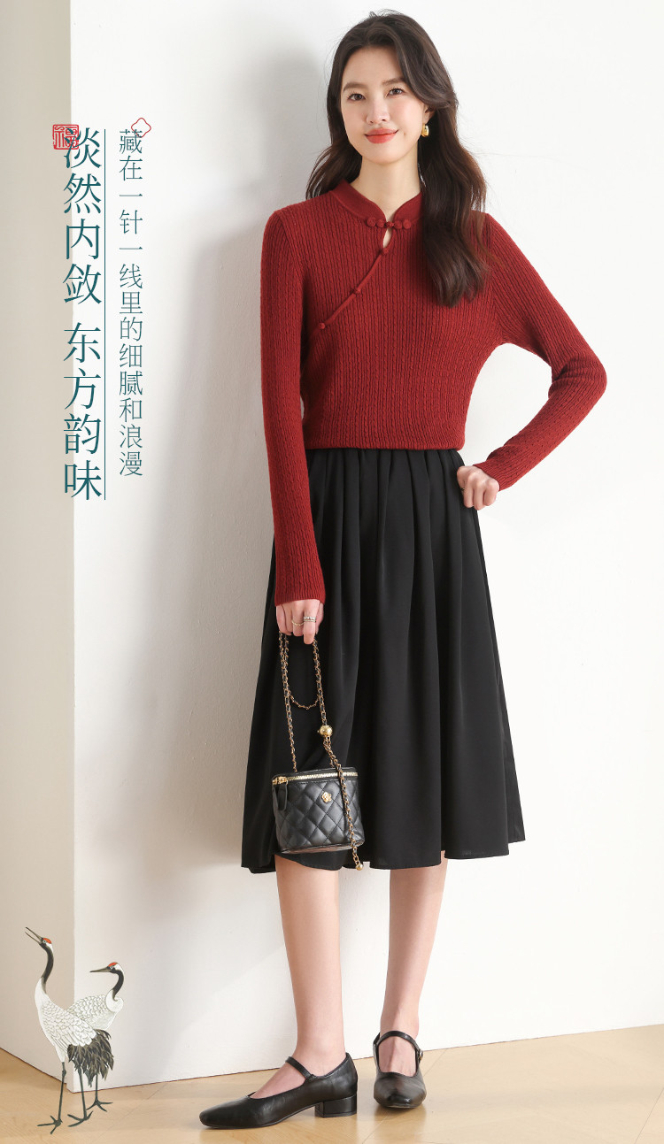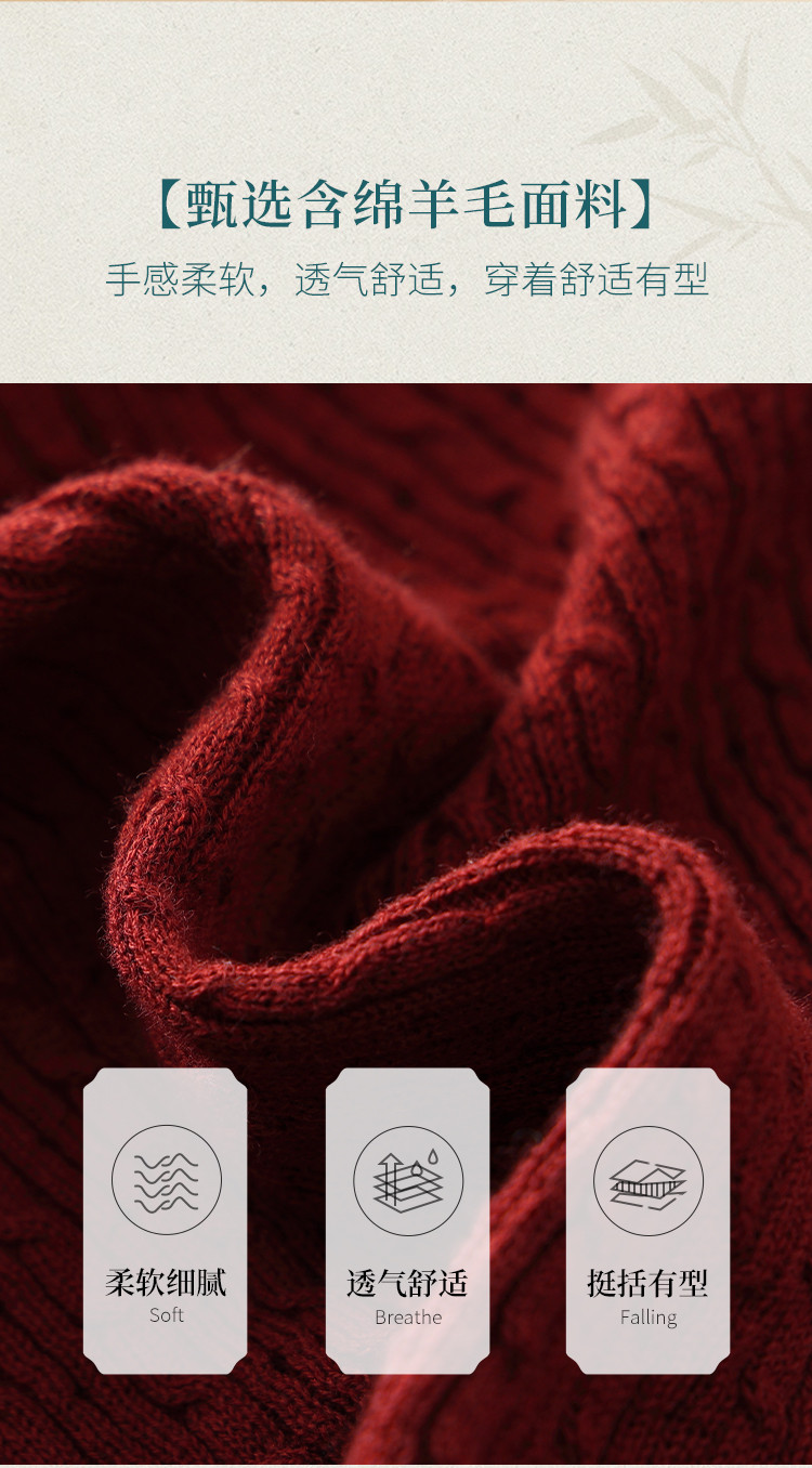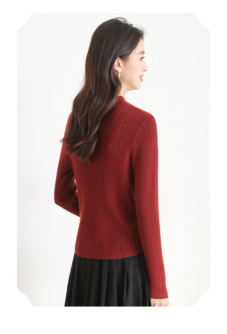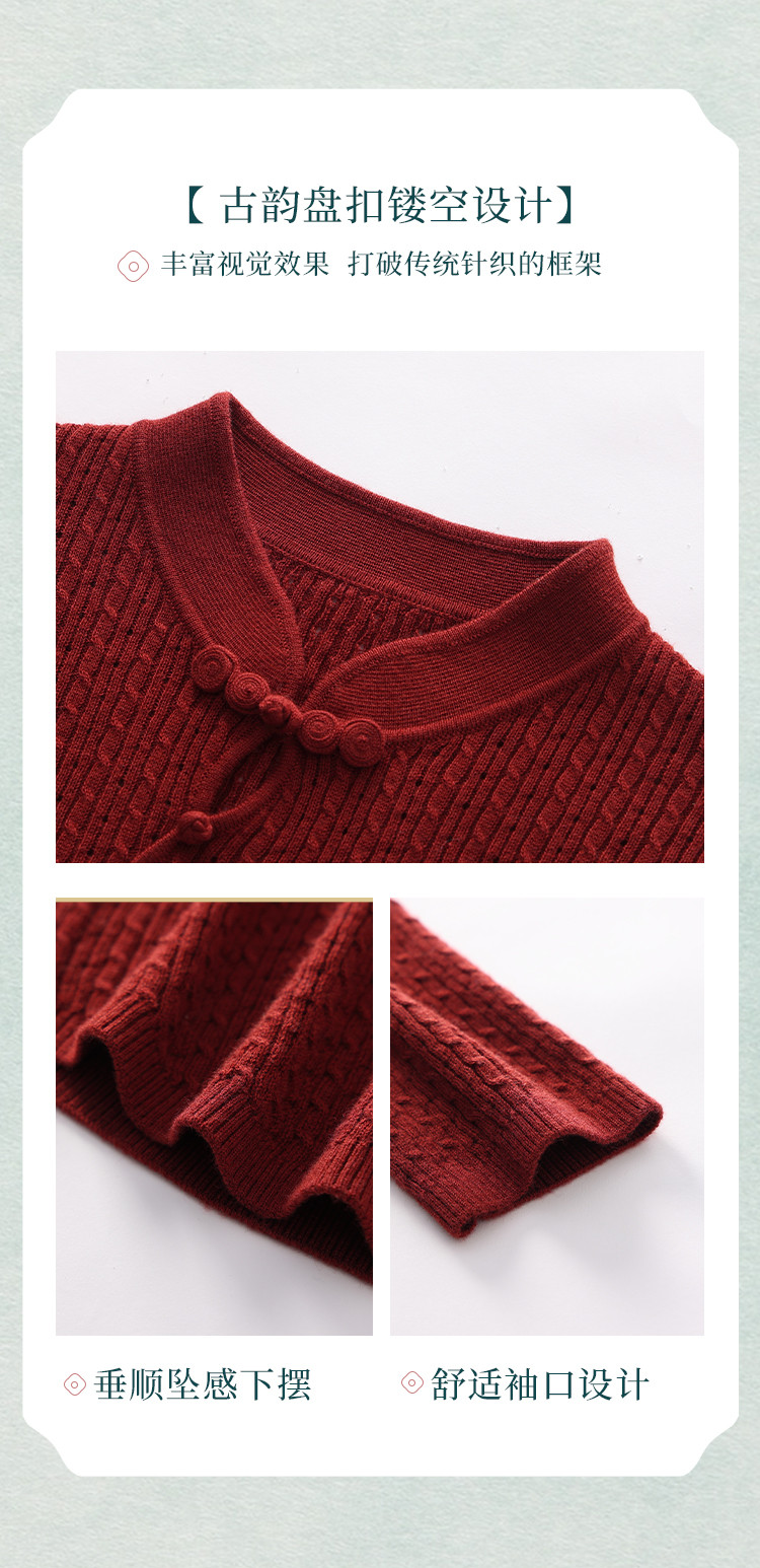 商品名称:【新中式】旗袍领盘扣针织衫女套头纯色绞花时尚羊毛打底衫线衫春 296467