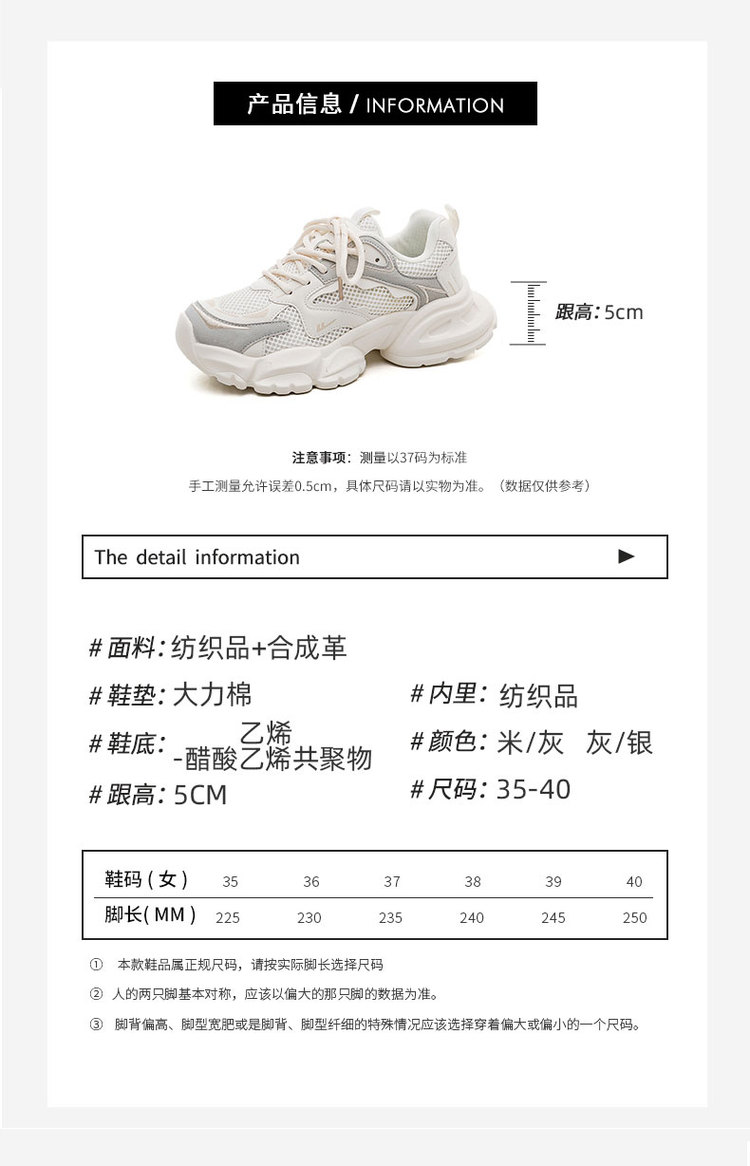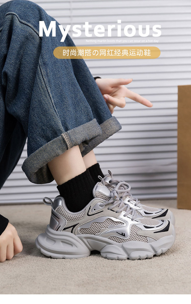 商品名称:网面透气老爹鞋女25夏季款女鞋厚底增高运动休闲鞋女复古休闲鞋 850516