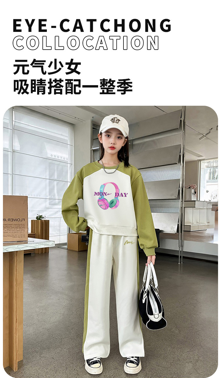 商品名称:童装春款女童套装撞色卫衣卫裤两件套儿童休闲洋气中大童套装 922963