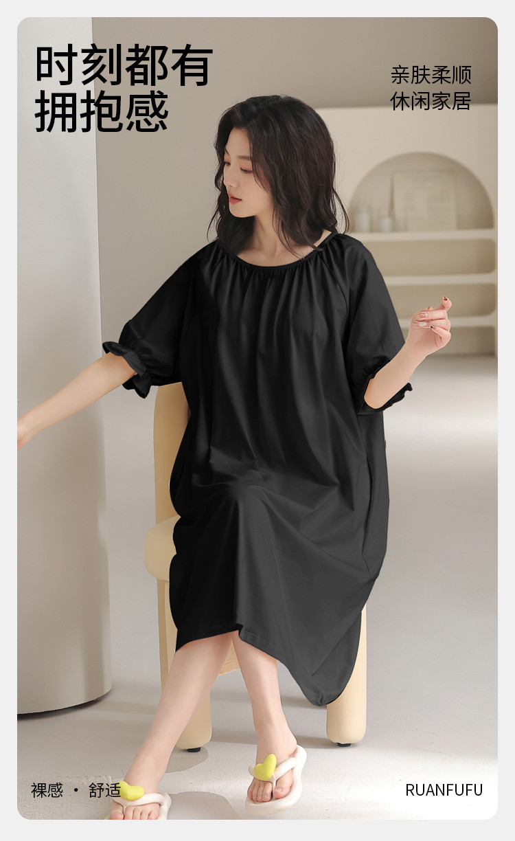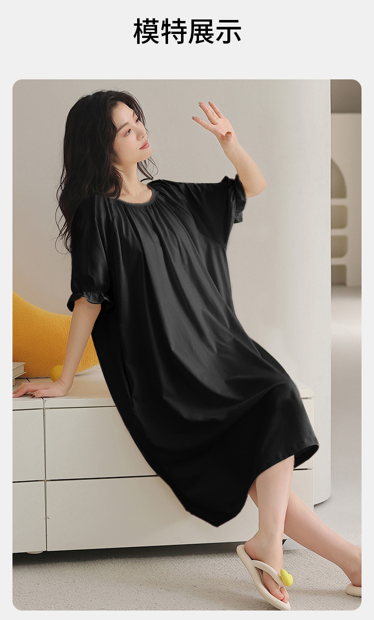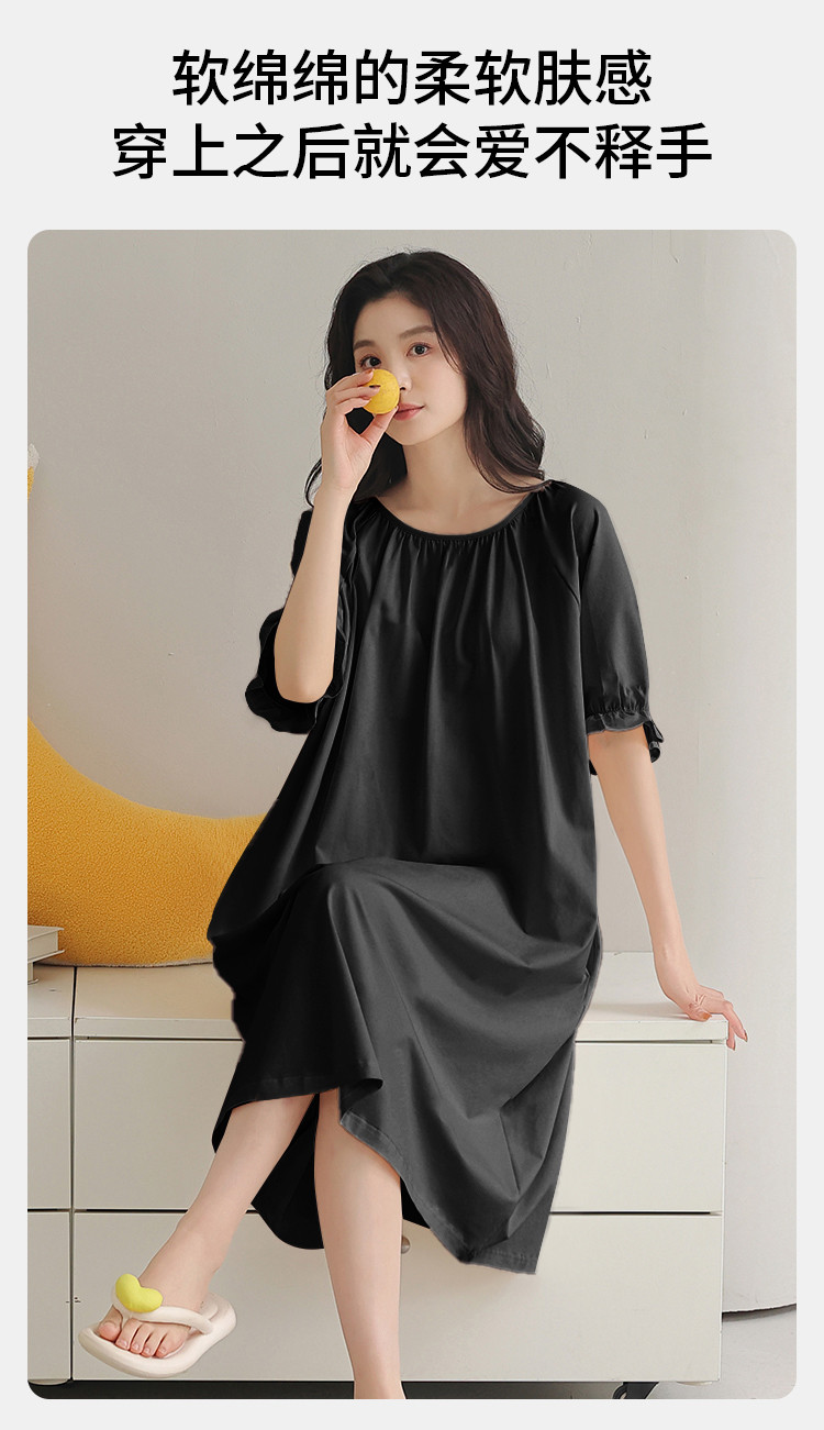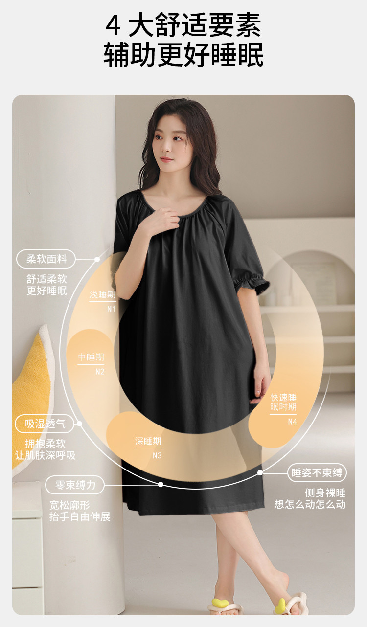 商品名称:【春上新 简约时尚】100%新疆棉基础款柔软舒适短袖家居睡裙 918347