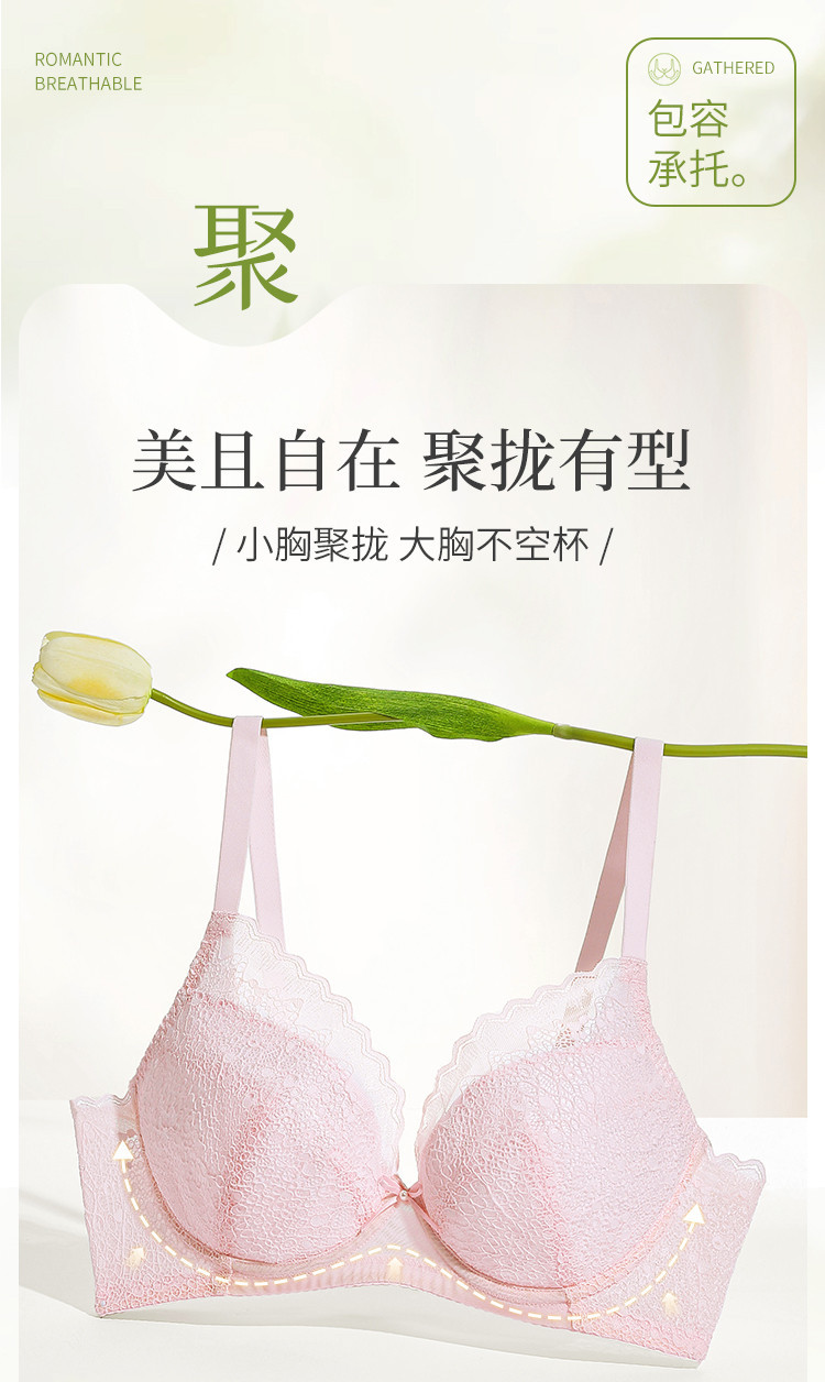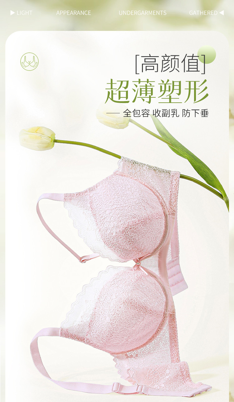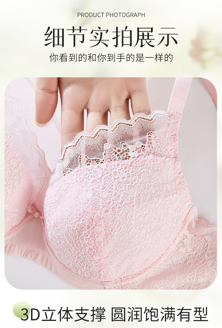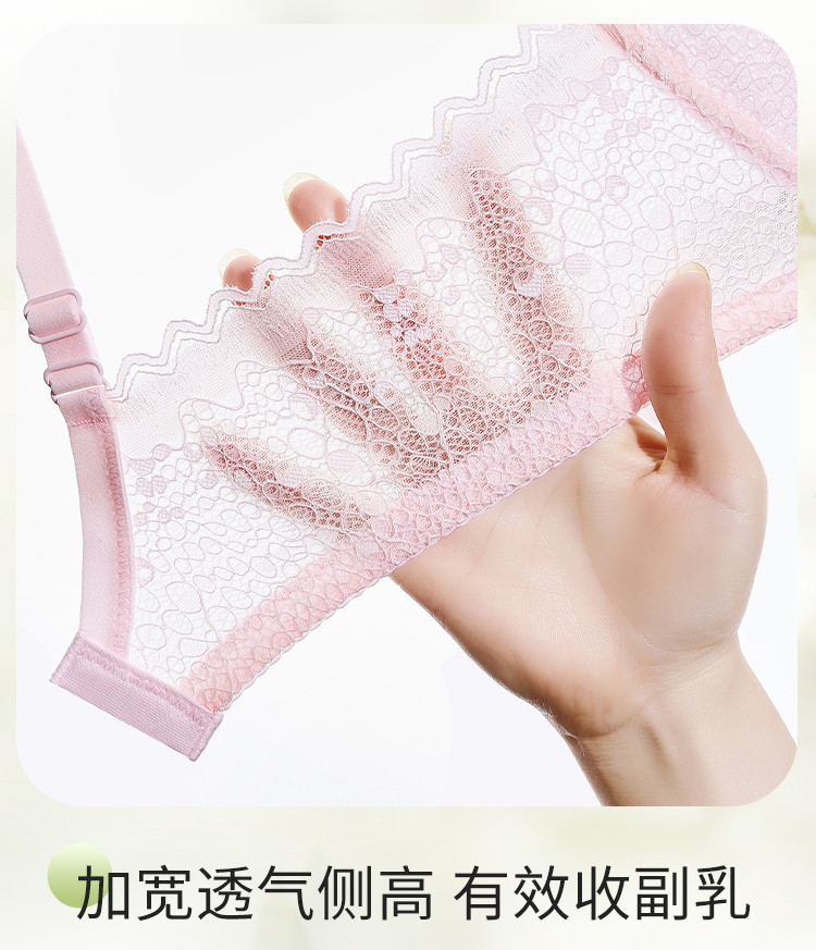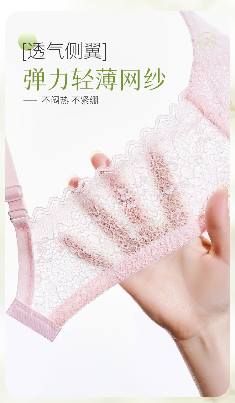 商品名称:【100%纯棉里杯】无钢圈内衣女性感蕾丝防下垂收副乳文胸罩女 647627
