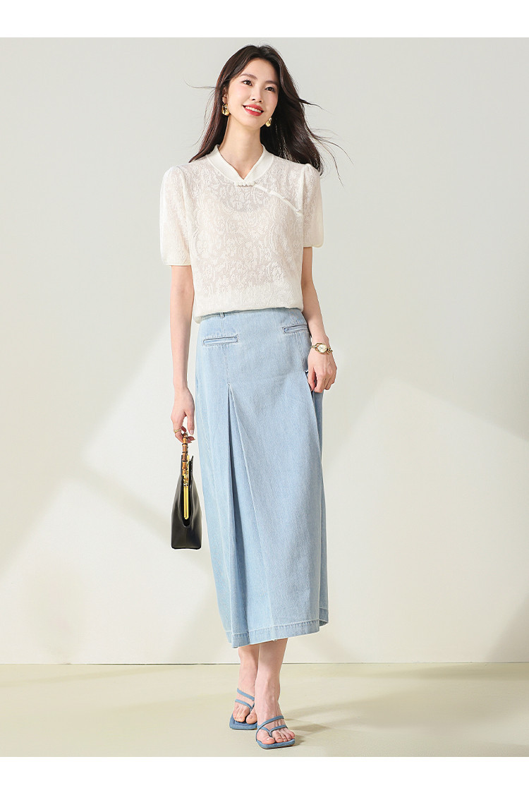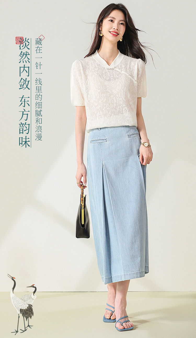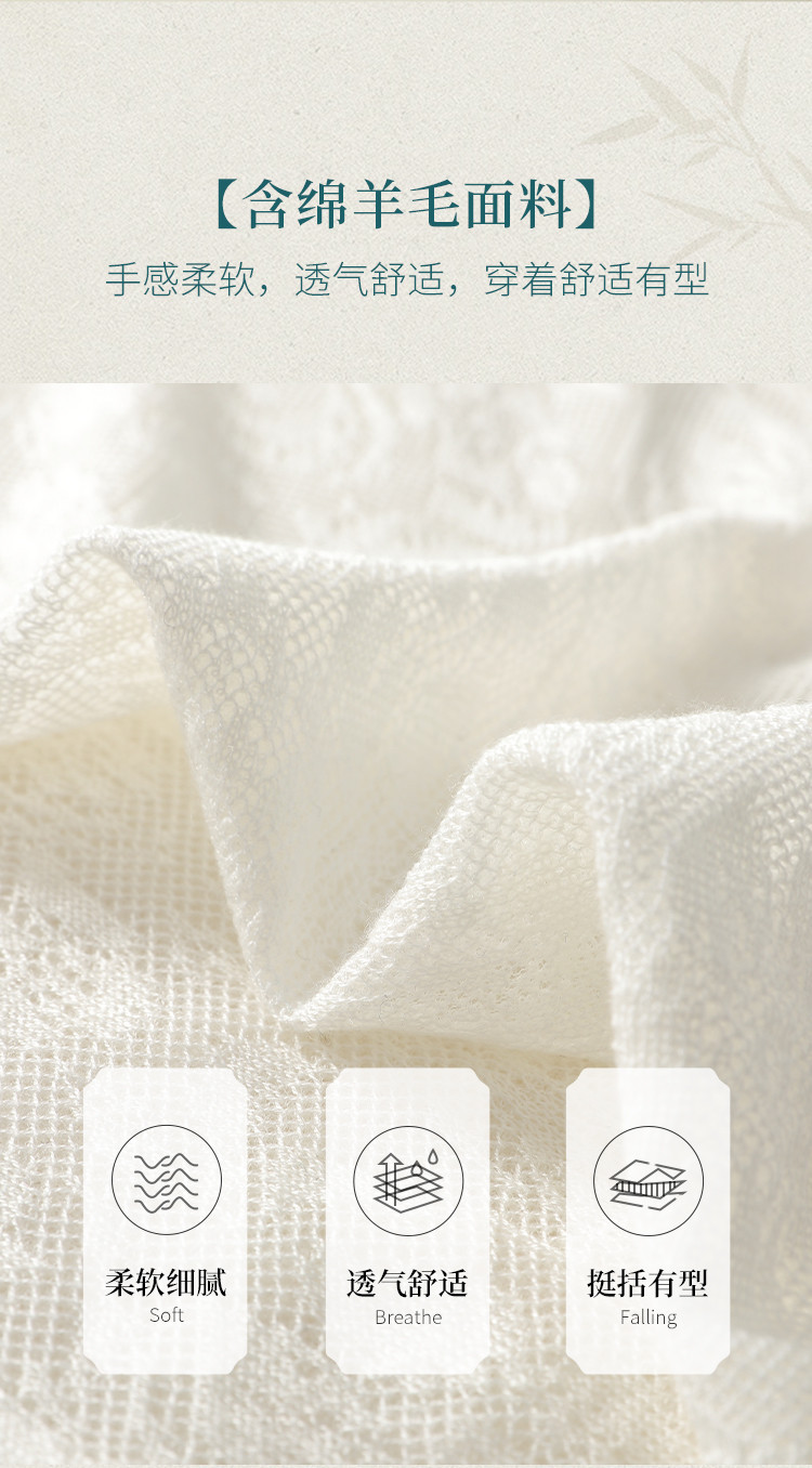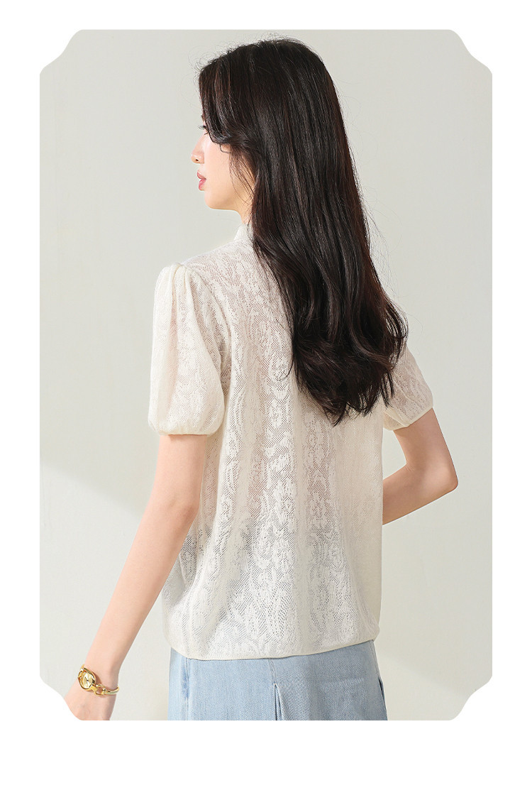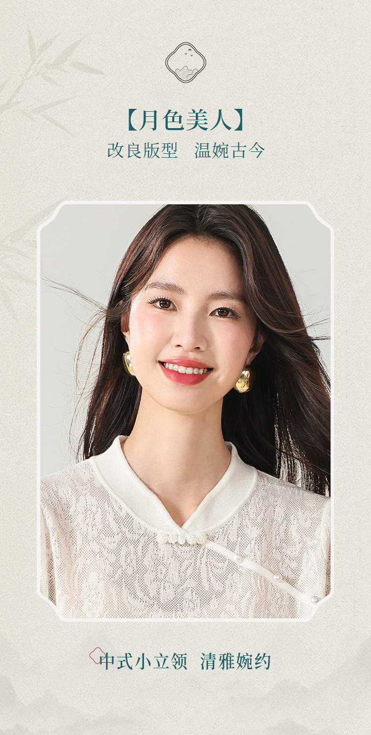 商品名称:【国风】新中式旗袍领精美提花含绵羊毛针织打底短袖T恤 327379