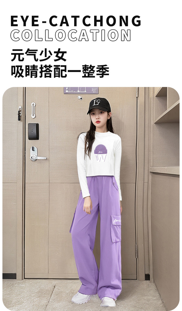 商品名称:童装女童套装春季女孩中大童长袖T恤工装裤两件套休闲百搭潮 242579