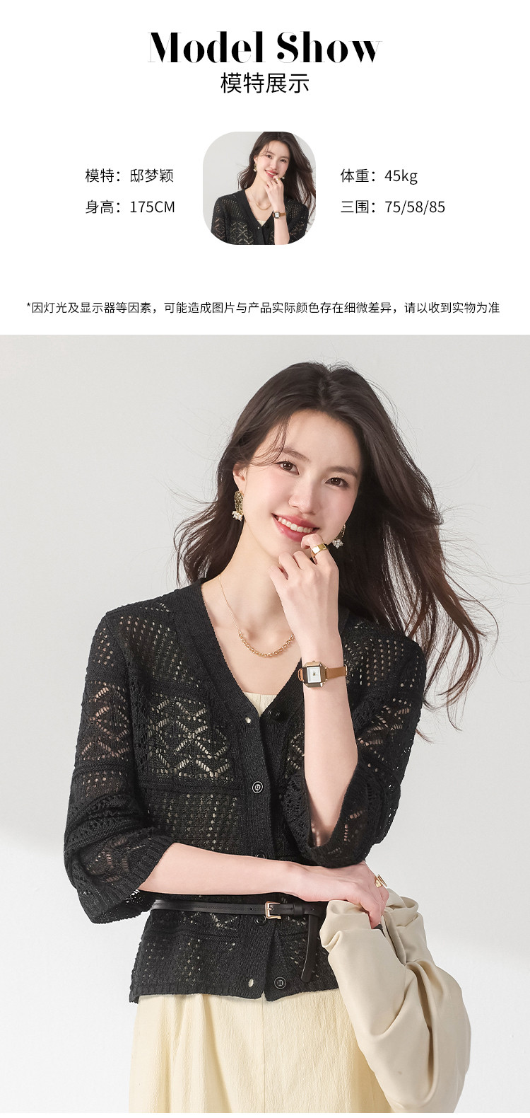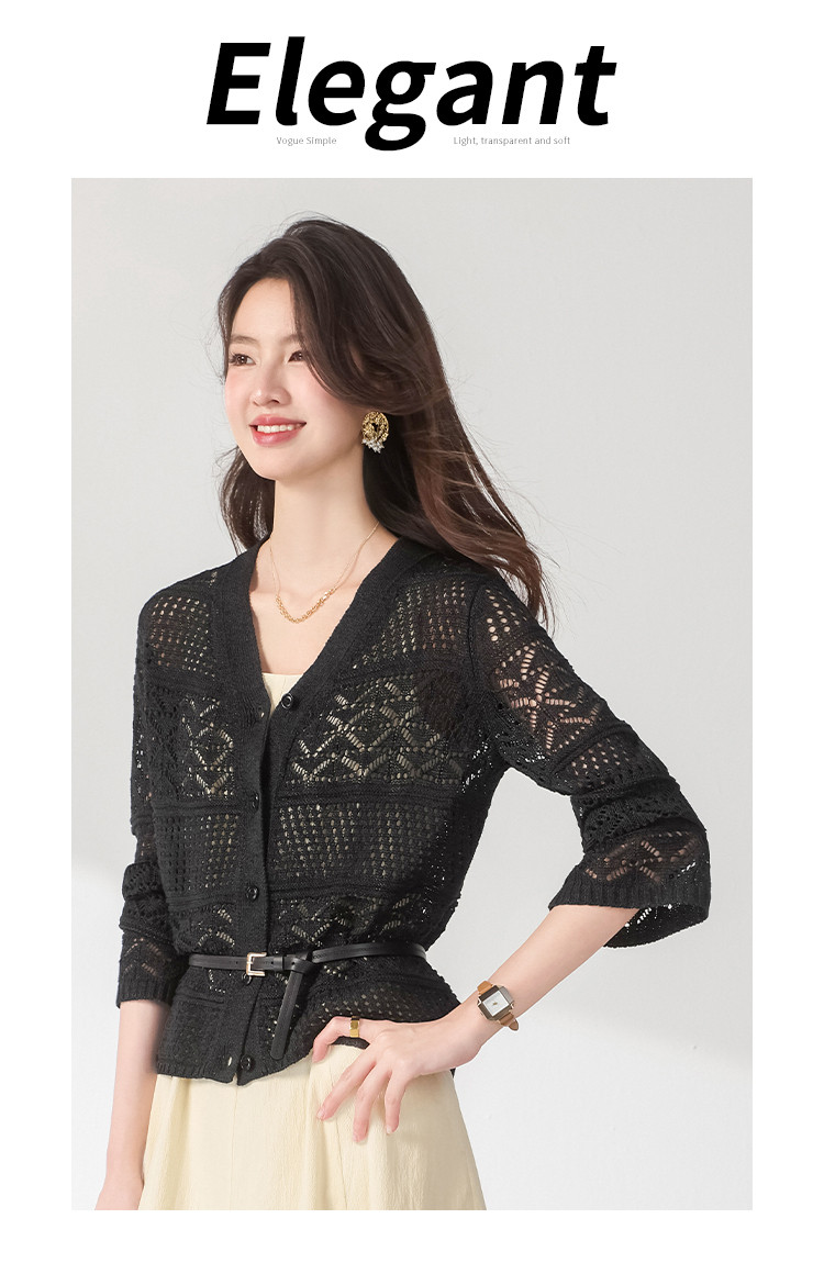 商品名称:【和纸纱】V领纯色纽扣针织衫女开衫含桑蚕丝镂空夏季薄款小外套 468755