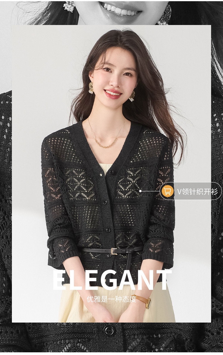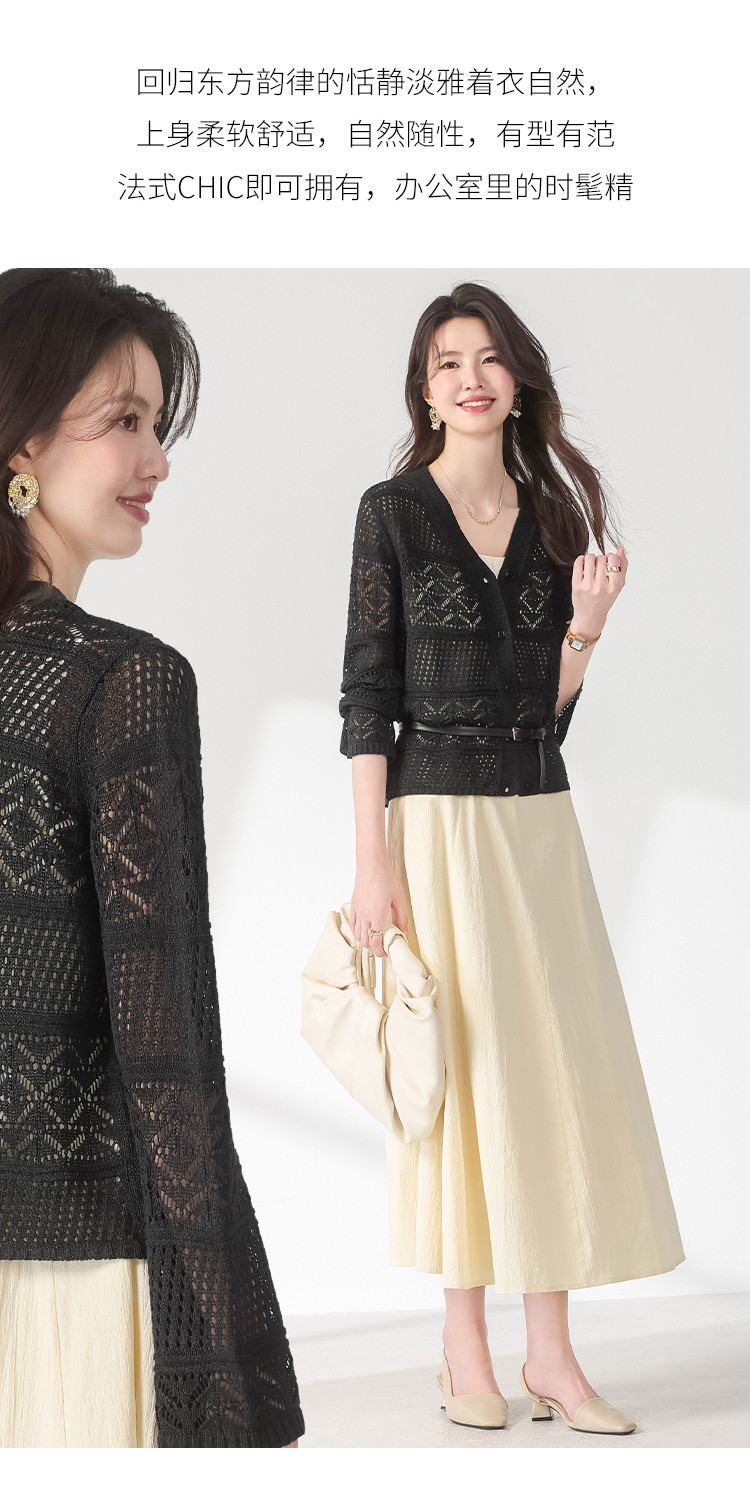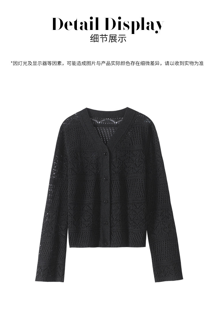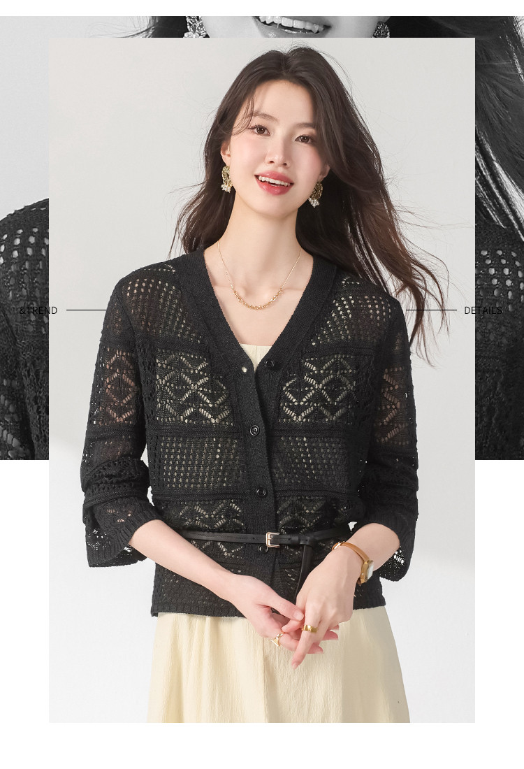 【和纸纱】V领纯色纽扣针织衫女开衫含桑蚕丝镂空夏季薄款小外套 468755