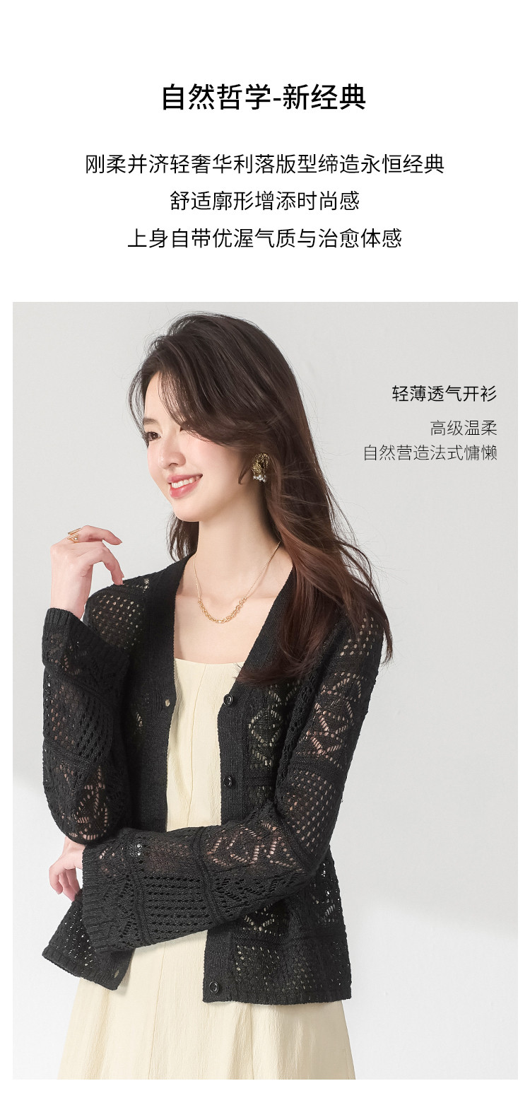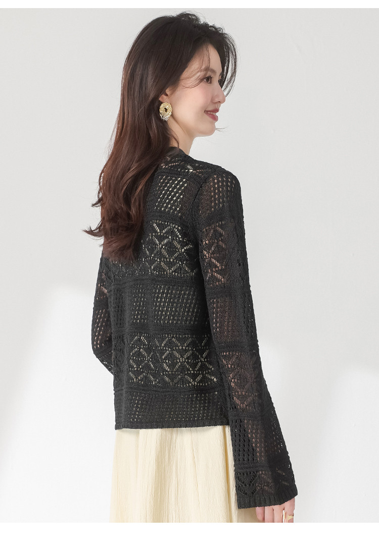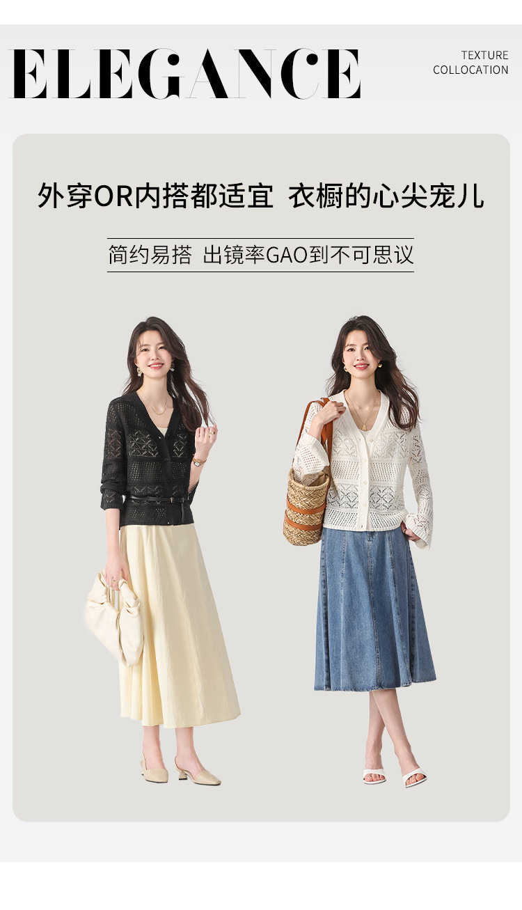 【和纸纱】V领纯色纽扣针织衫女开衫含桑蚕丝镂空夏季薄款小外套 468755