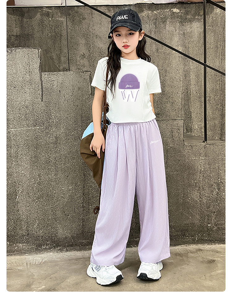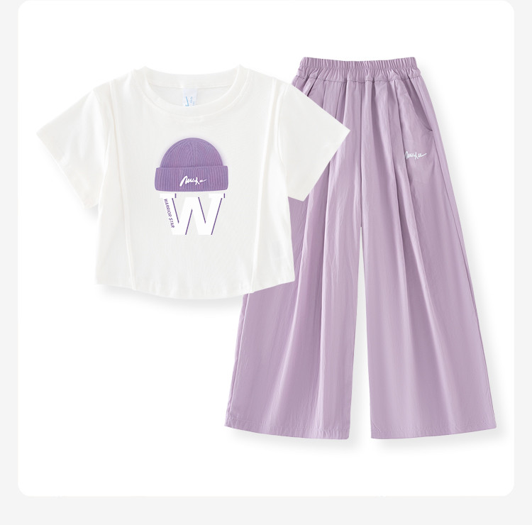 商品名称:童装女童套装夏季时尚短袖上衣阔腿山本裤两件套中大童洋气 168339