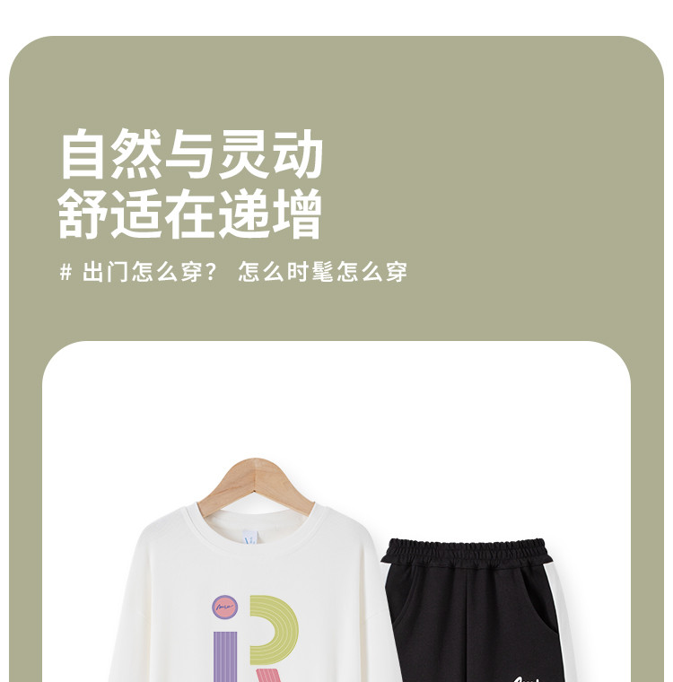 商品名称:童装女童套装秋季中大童简约时尚印花T恤休闲裤两件套儿童洋气 857171