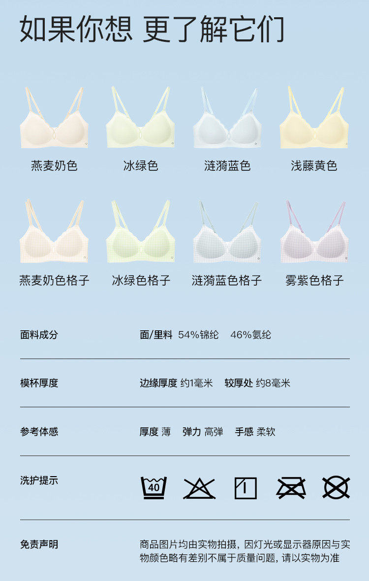 商品名称:【无钢圈细肩带】25新款凉感透气文胸夏季薄款内衣女 180864