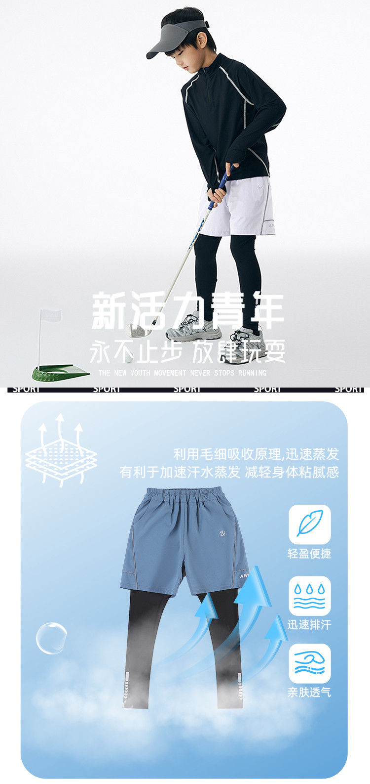商品名称:【凉感运动裤】儿童裤子2025春夏男女童帅气假两件速干运动裤 389907