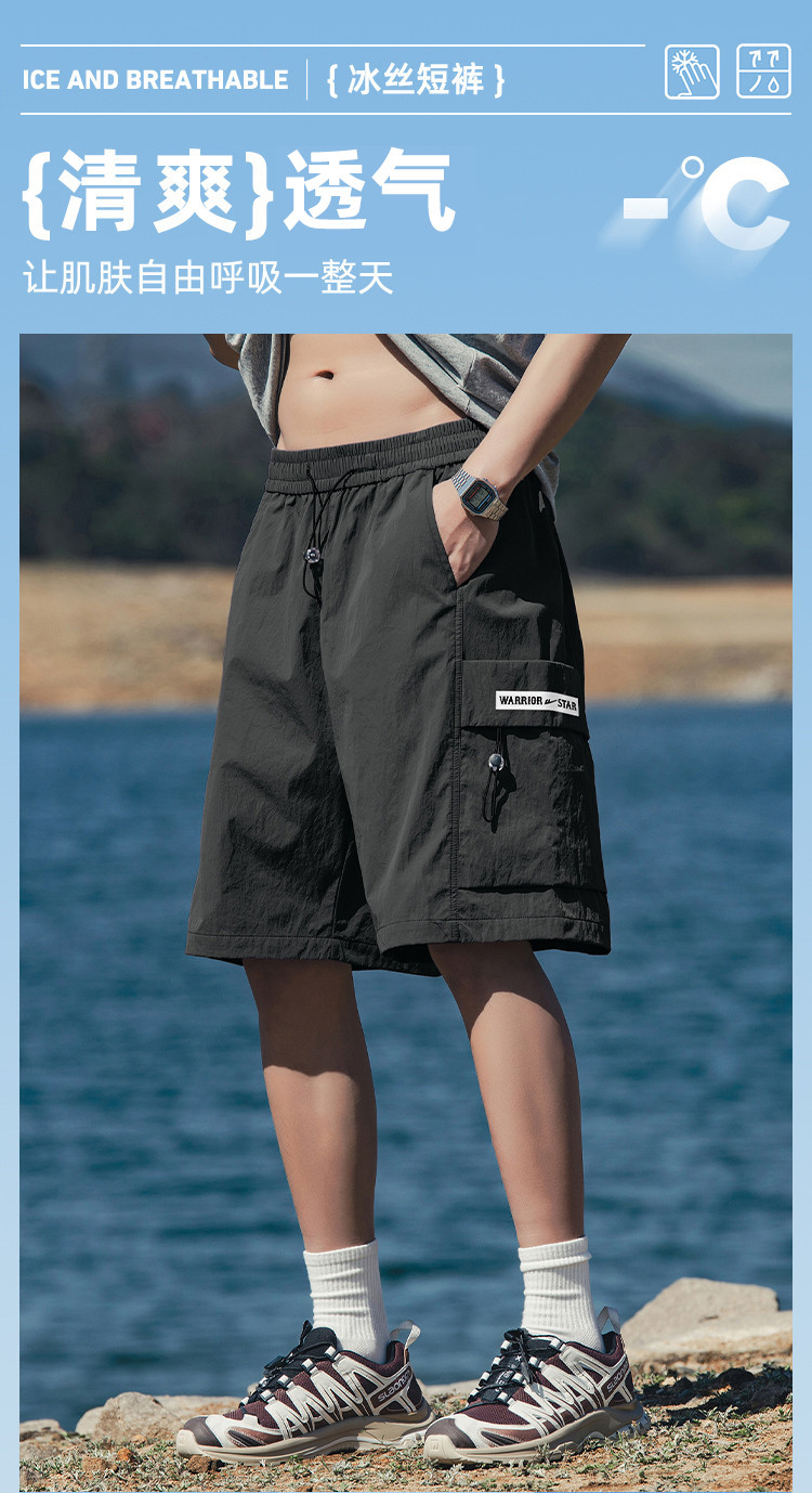 商品名称:【冰丝轻薄】短裤男女款夏季山系户外工装潮牌宽松薄款运动五分裤 171027
