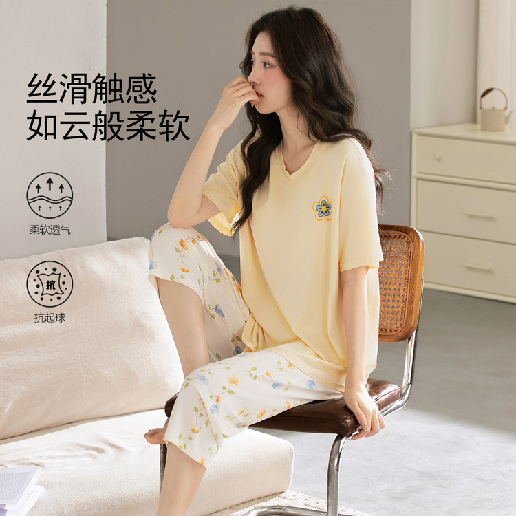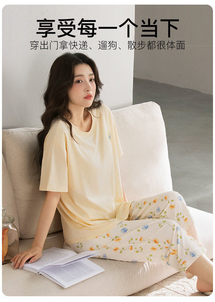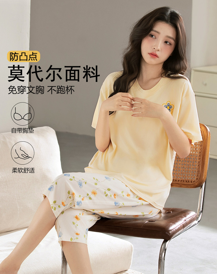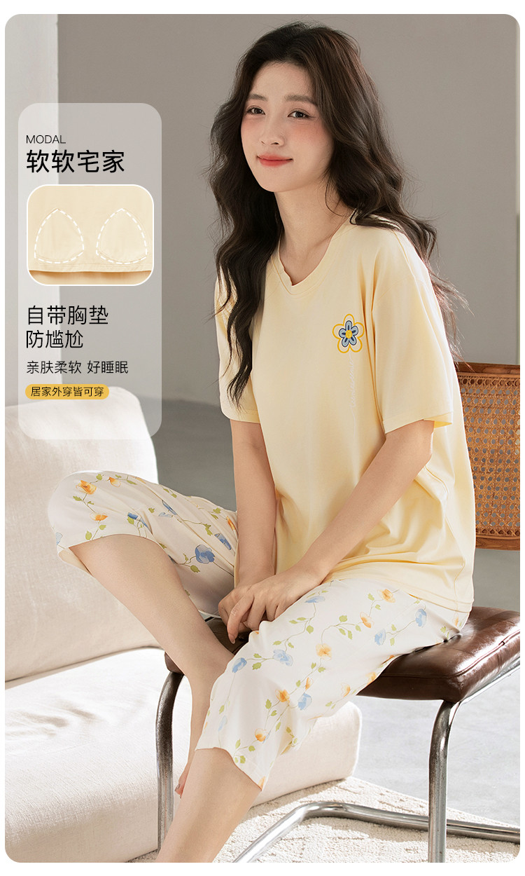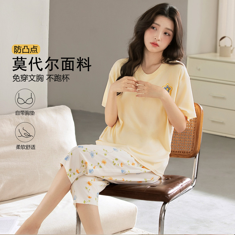 商品名称:【自带胸垫莫代尔】可外穿女士睡衣家居服短袖短裤春夏薄款可外穿 146891