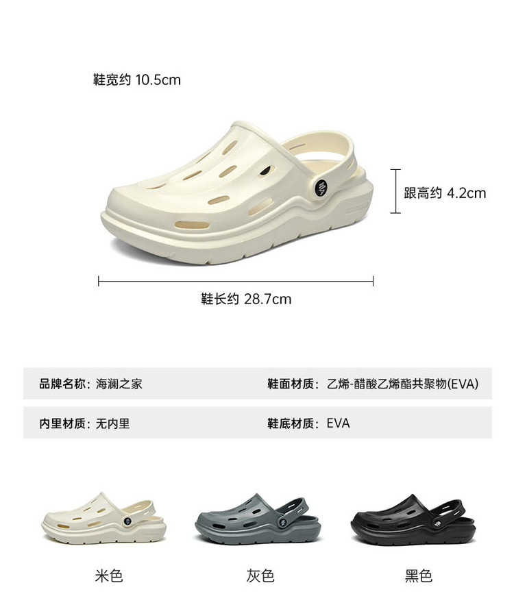 商品名称:男士凉鞋经典简约低调洞洞鞋透气男凉鞋轻便沙滩凉鞋男 641871