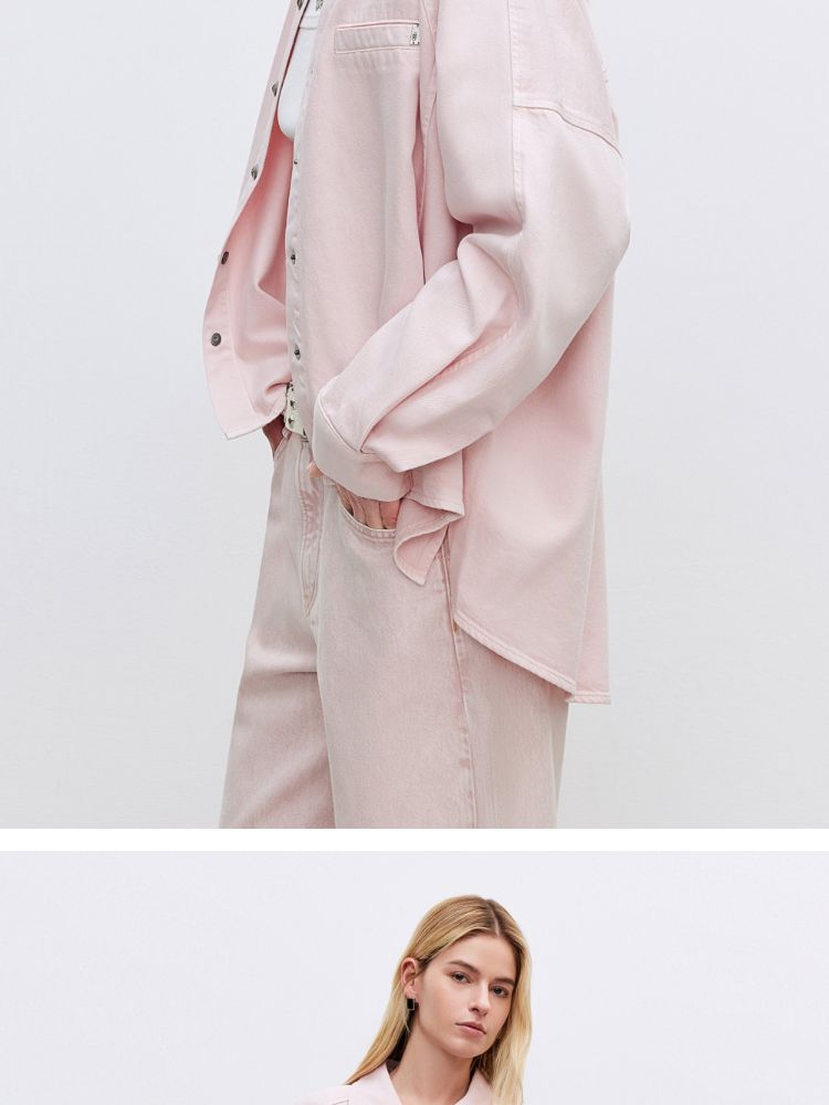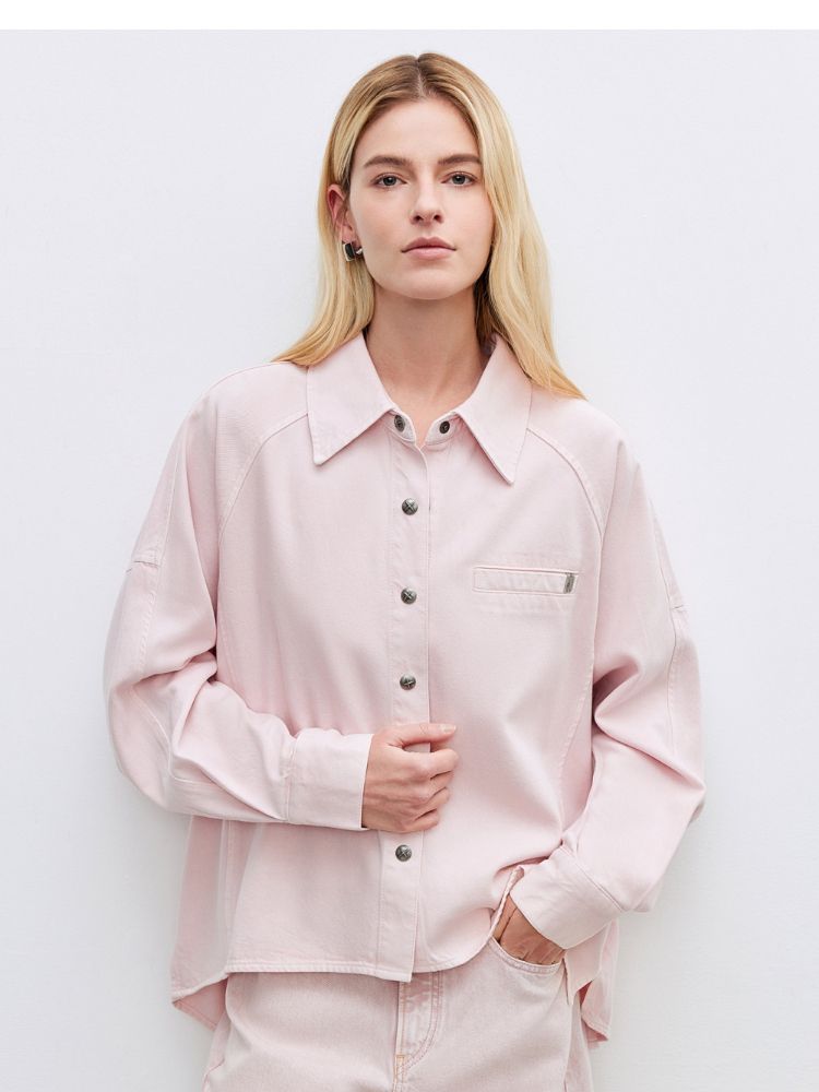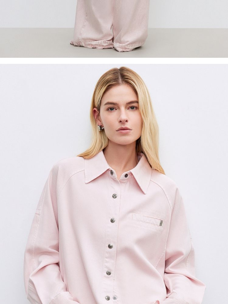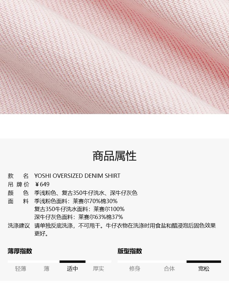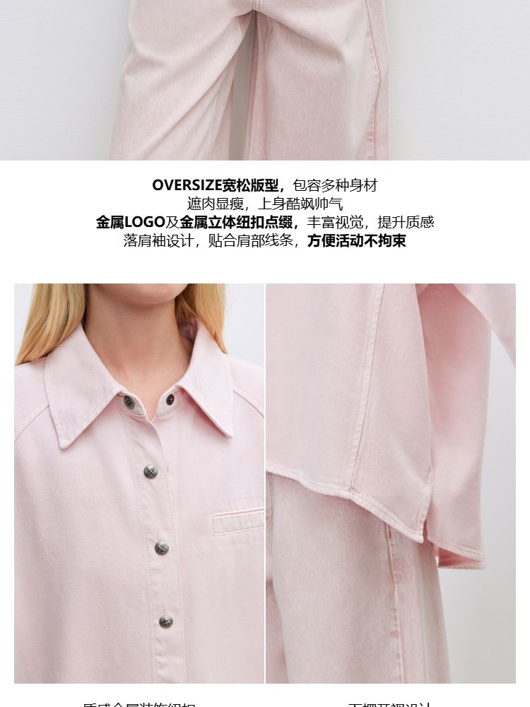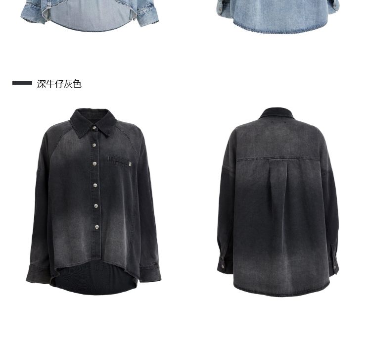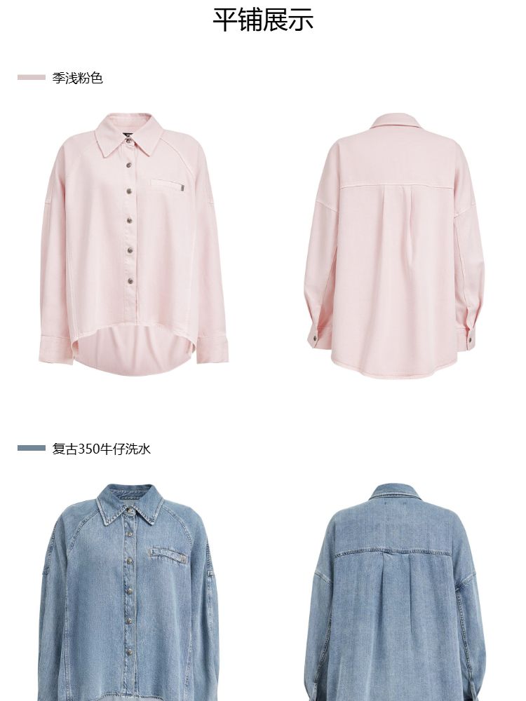 商品名称:【牛仔衬衫】25夏季含莱赛尔落肩宽松翻领牛仔衬衫女 043034