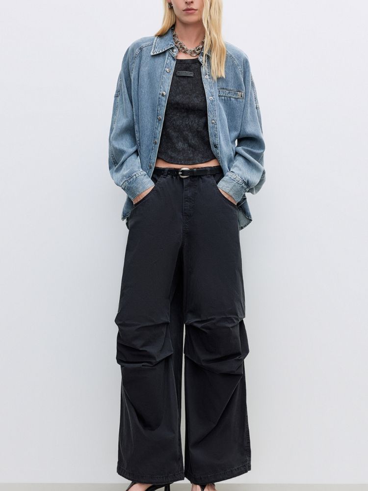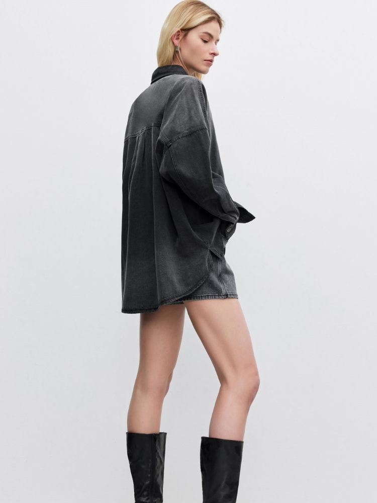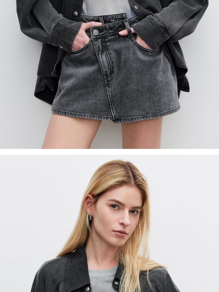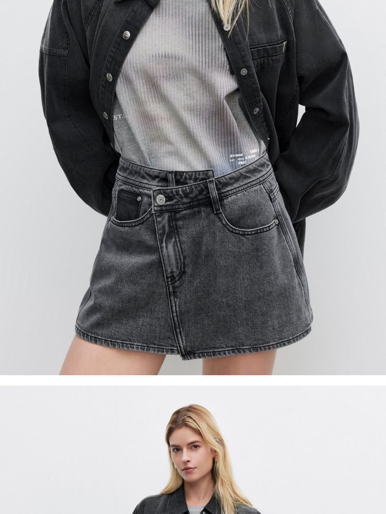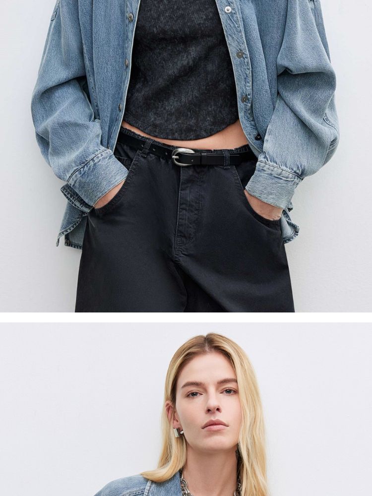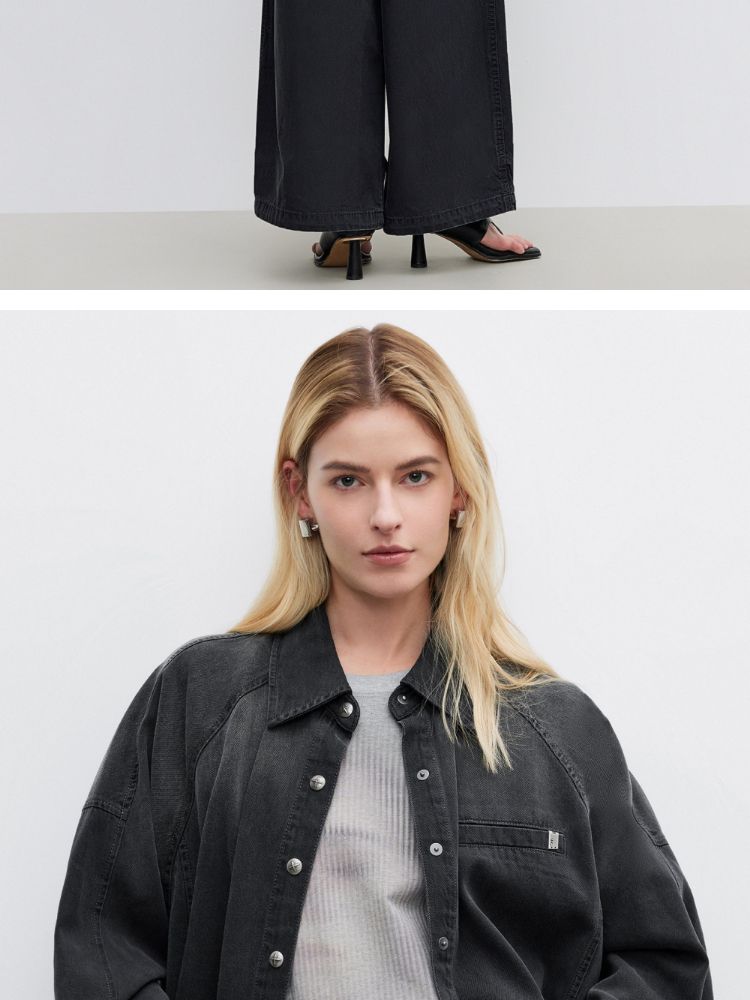 商品名称:【牛仔衬衫】25夏季含莱赛尔落肩宽松翻领牛仔衬衫女 043034