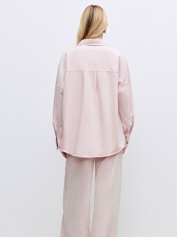 【牛仔衬衫】25夏季含莱赛尔落肩宽松翻领牛仔衬衫女 043034