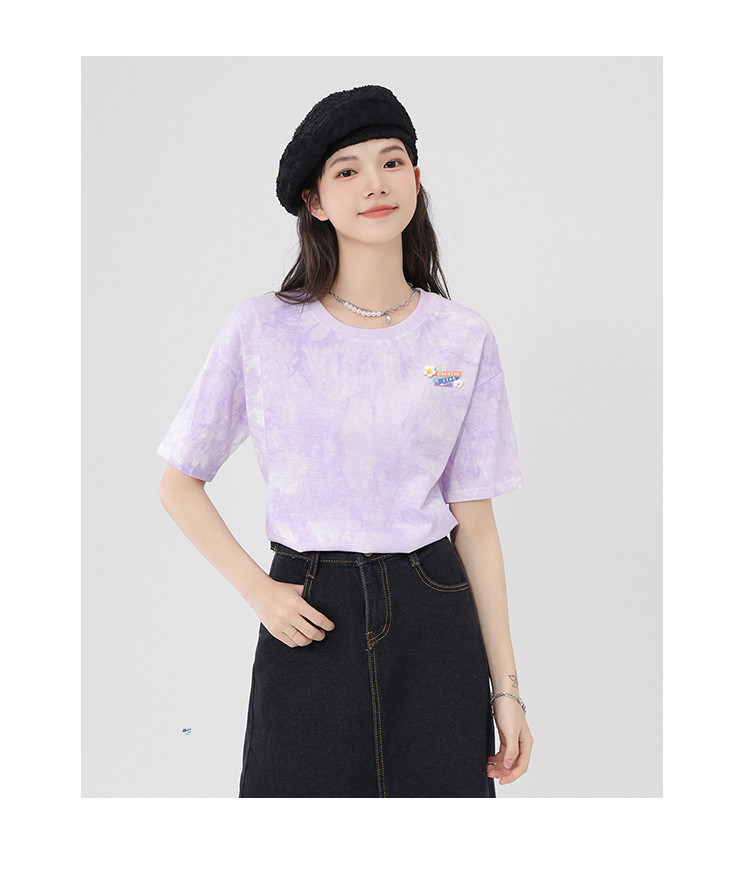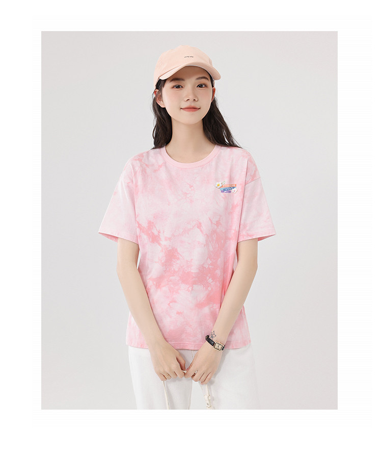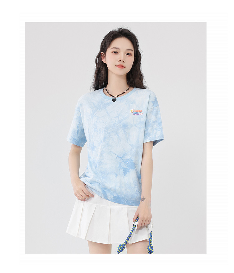 【女装】夏季纯棉短袖上衣女宽松个性扎染T恤设计感小众ins潮 069395