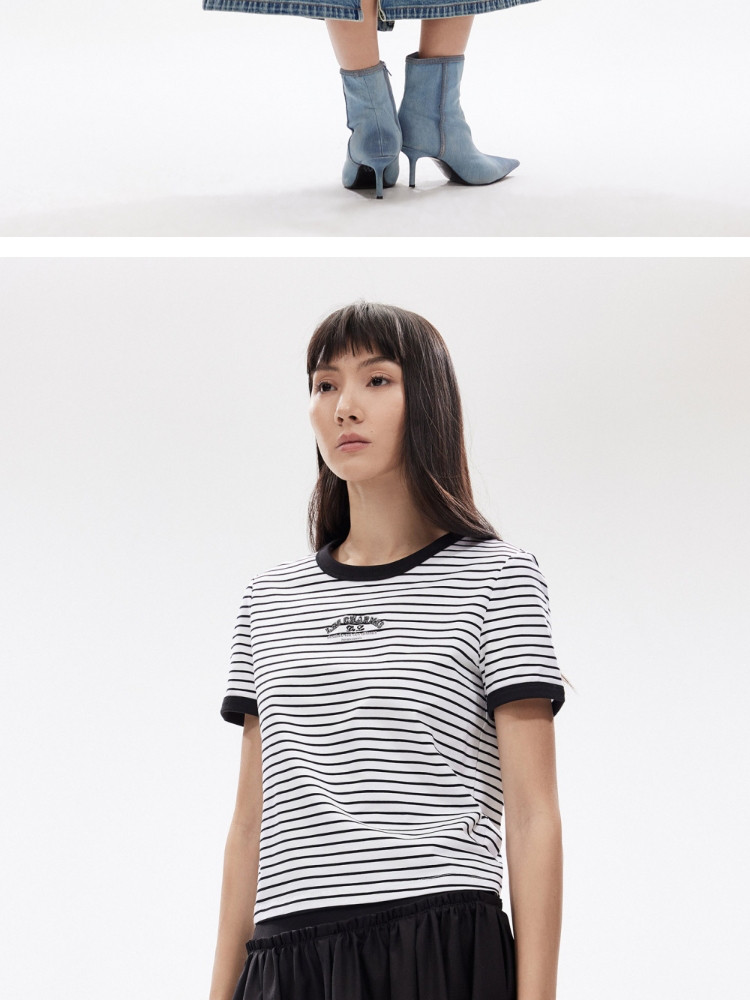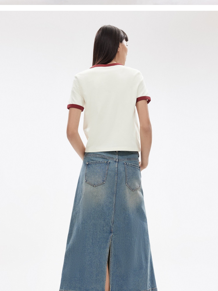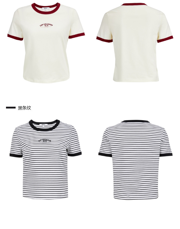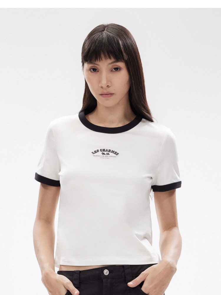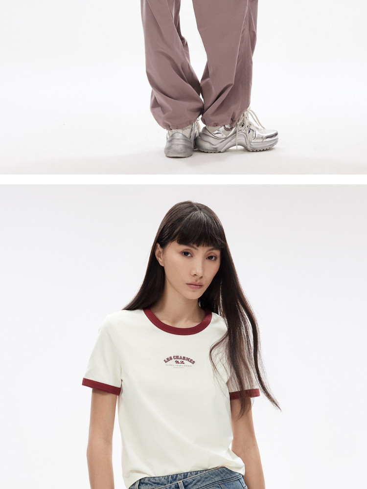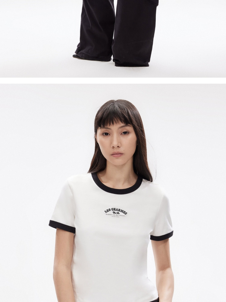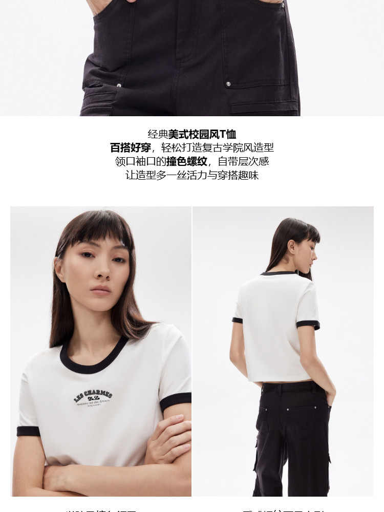 【撞色设计】2025夏季舒适字母正肩圆领短袖合体T恤女 502554