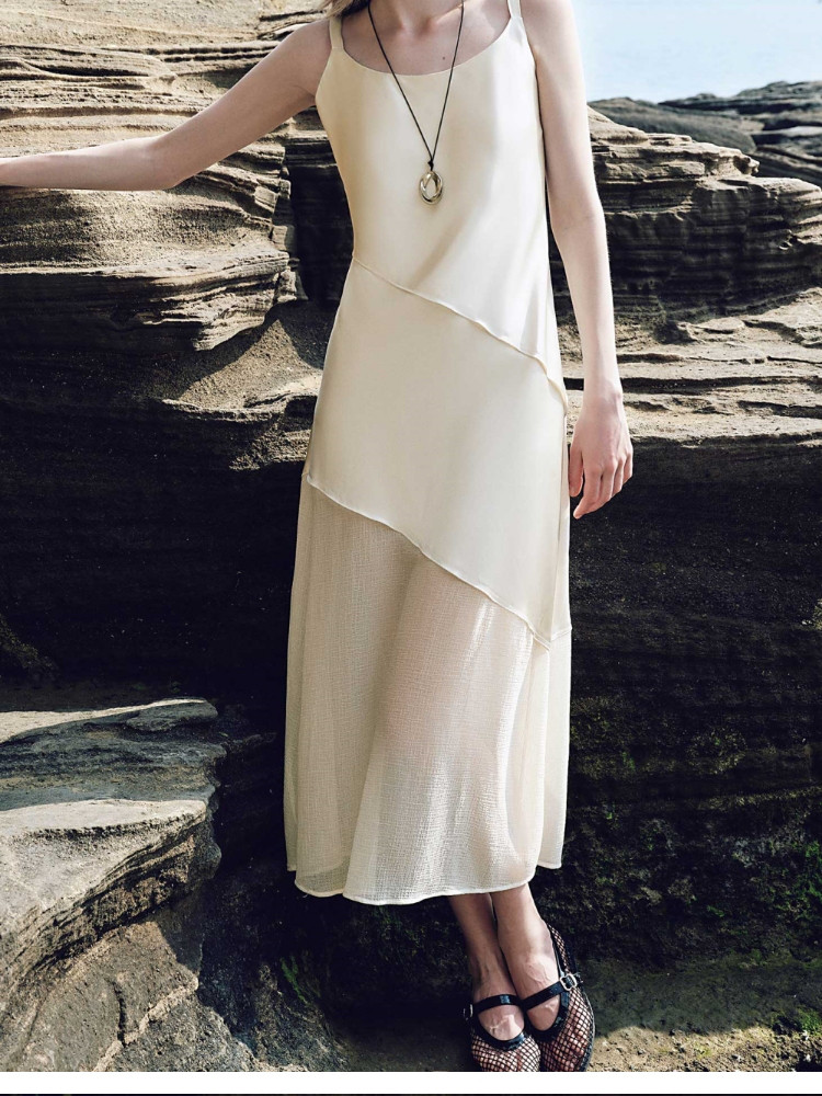 商品名称:【浪漫欧若风】2025夏季新款高级感气质吊带拼接长裙连衣裙女 019418