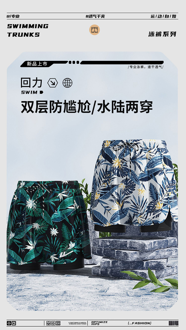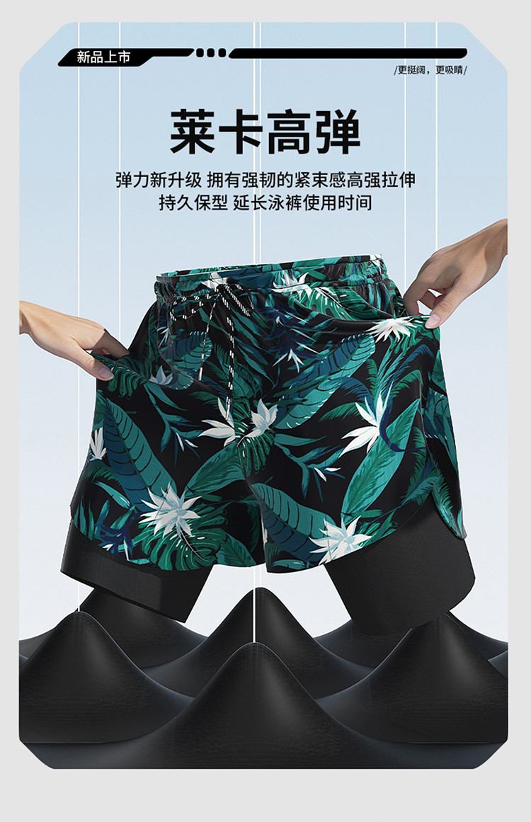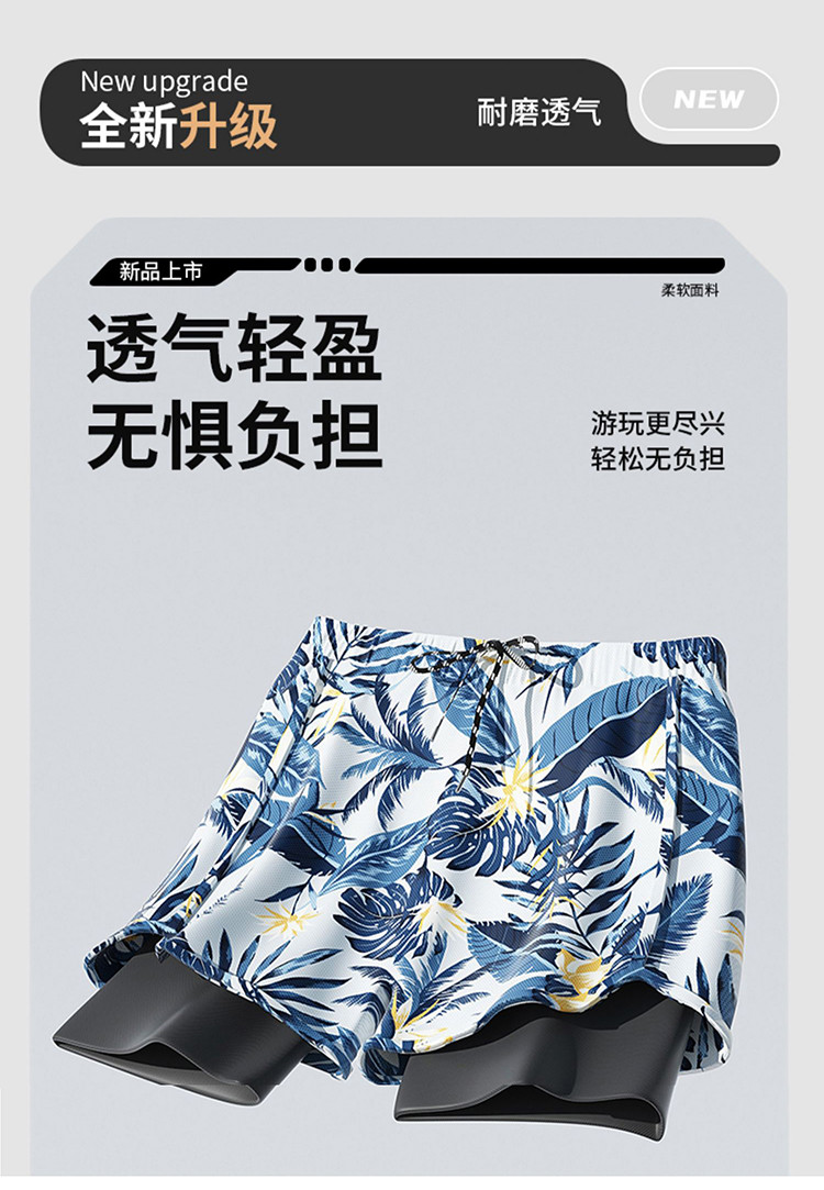 【双层防走光】泳裤男士透气游泳沙滩平角泳裤游泳裤泡温泉防尴尬 390419
