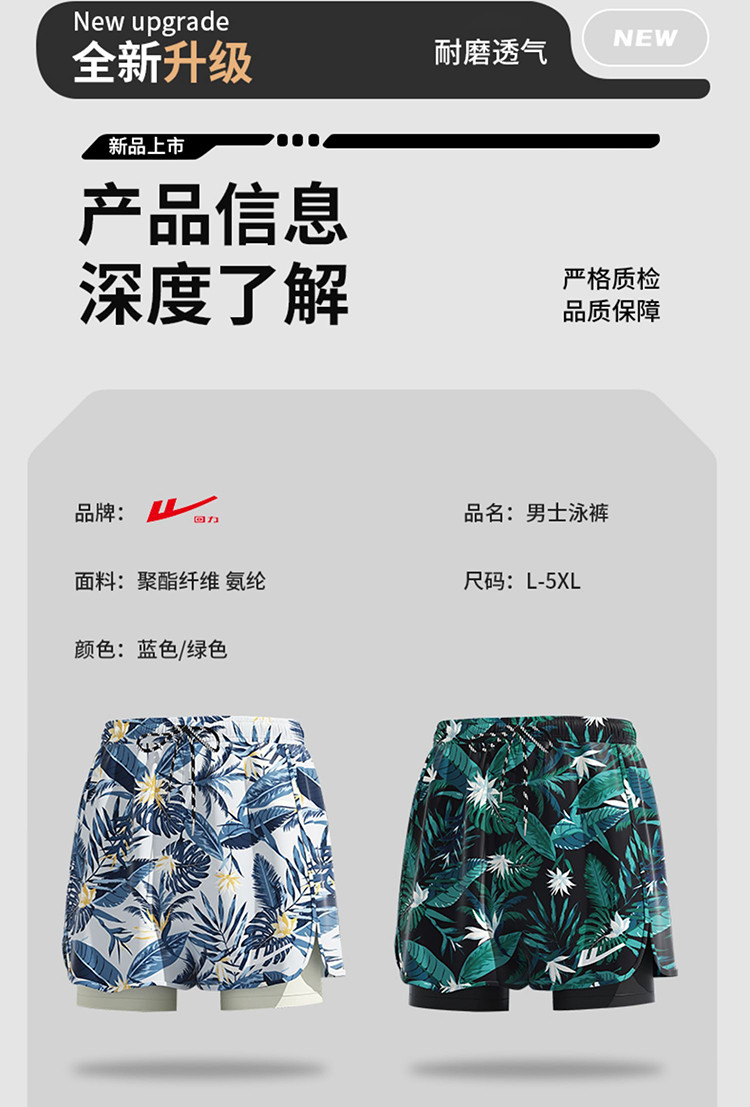 商品名称:【双层防走光】泳裤男士透气游泳沙滩平角泳裤游泳裤泡温泉防尴尬 390419