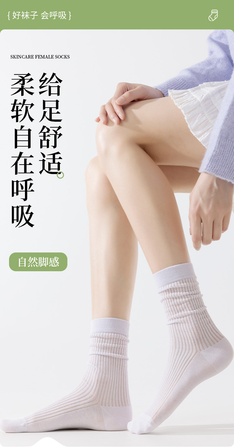 【时尚百搭】4双装柔棉中筒袜夏季薄款适气网眼女士袜子ins潮 957067