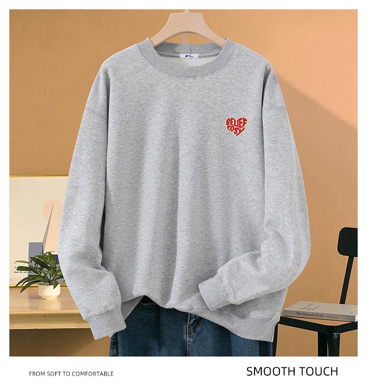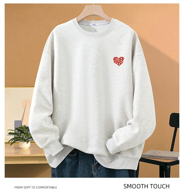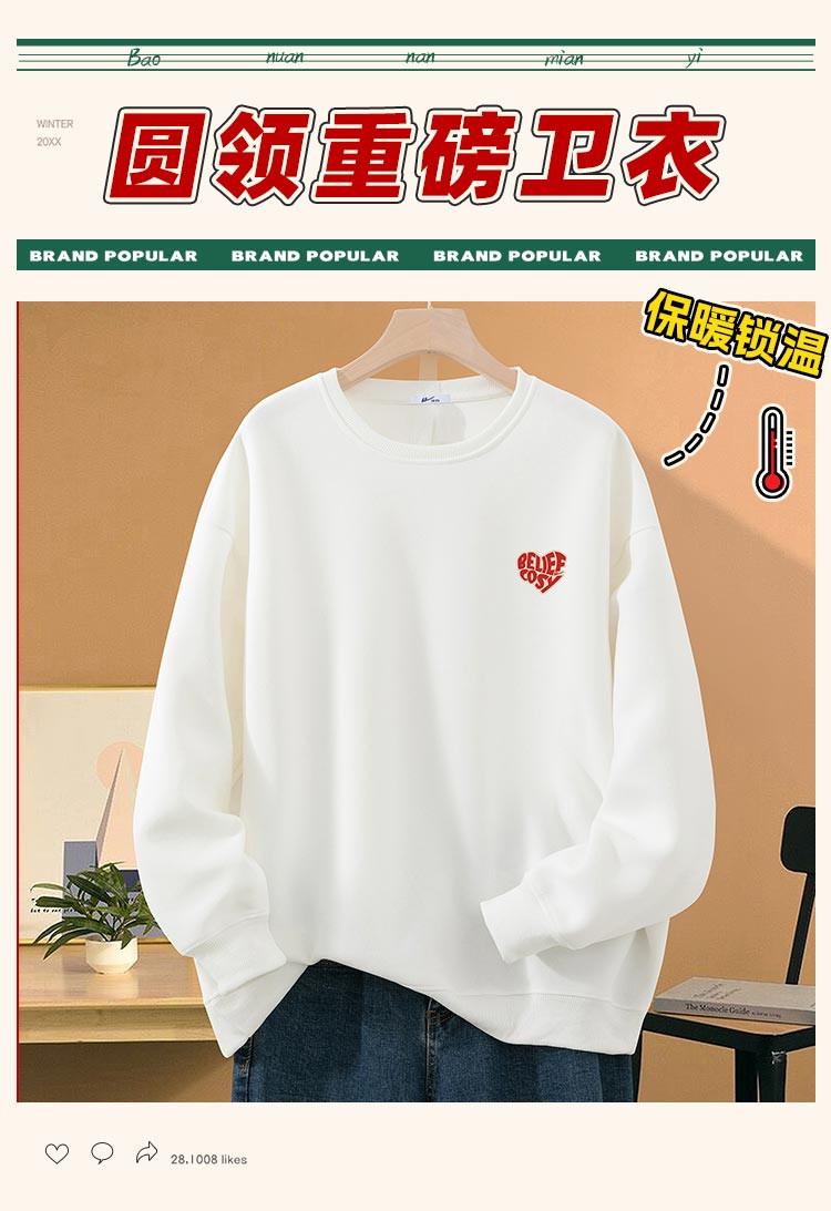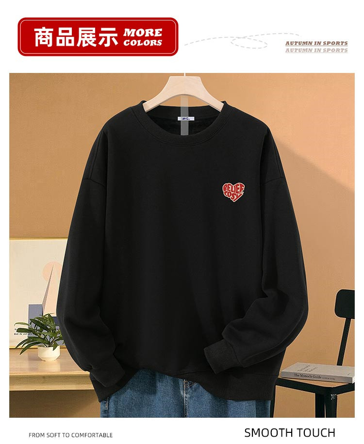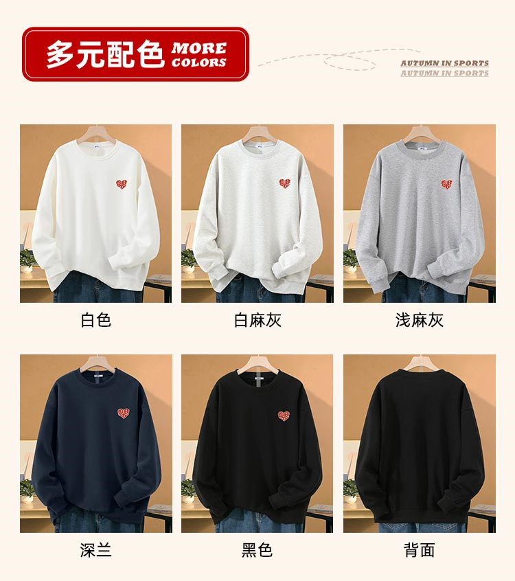 商品名称:【重磅棉】日系简约爱心刺绣圆领卫衣男女款潮牌宽松百搭打底上衣 216787