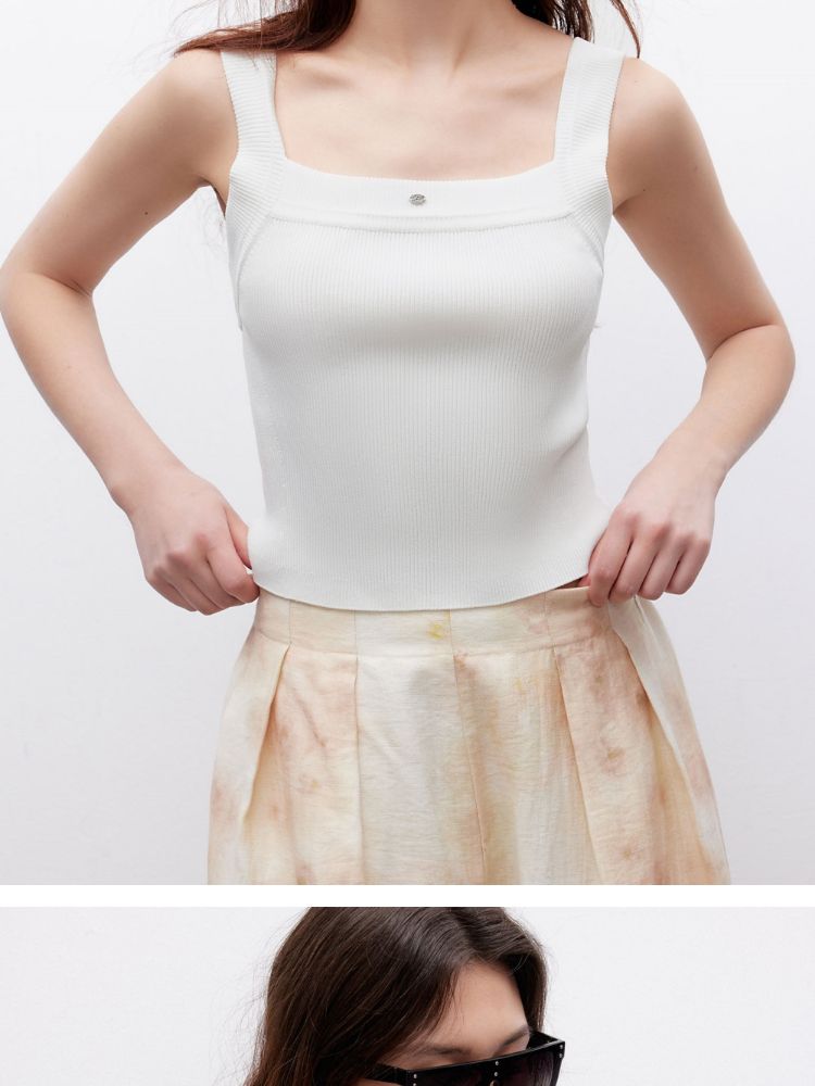 【坑条纹针织】2025夏季简约百搭纯色方领显瘦吊带针织背心女 460762