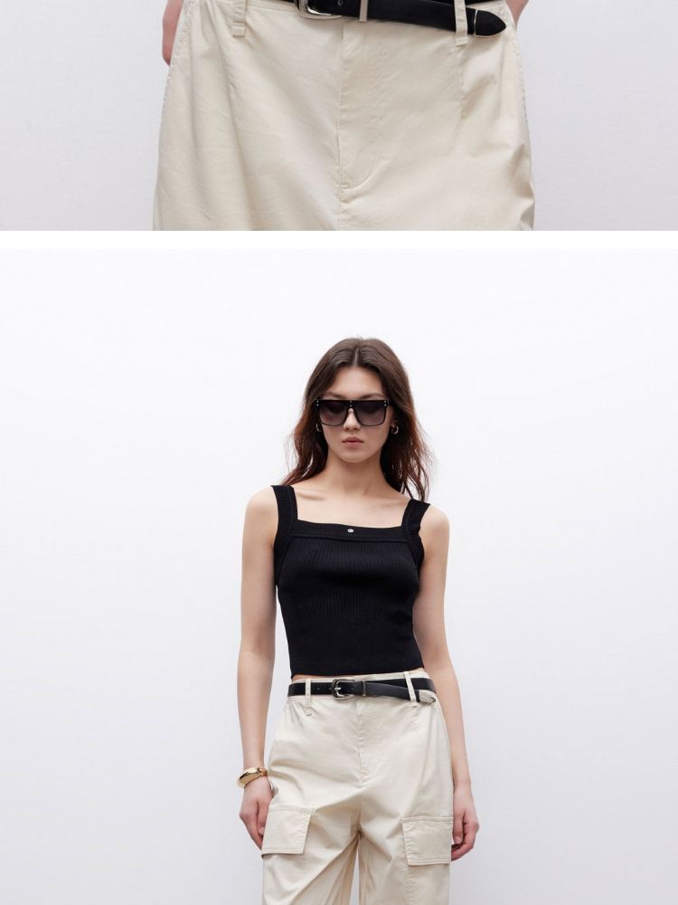 商品名称:【坑条纹针织】2025夏季简约百搭纯色方领显瘦吊带针织背心女 460762