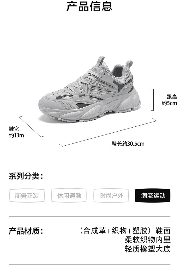 商品名称:男鞋简约个性男士休闲鞋潮流时尚老爹鞋百搭厚底男款透气老爹鞋 204047