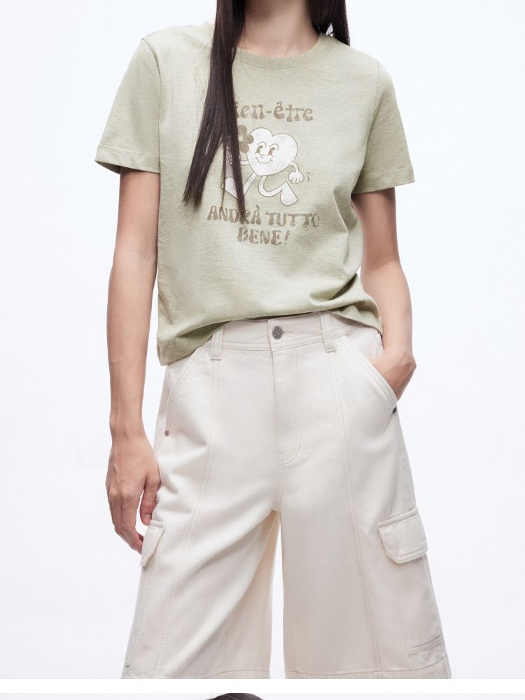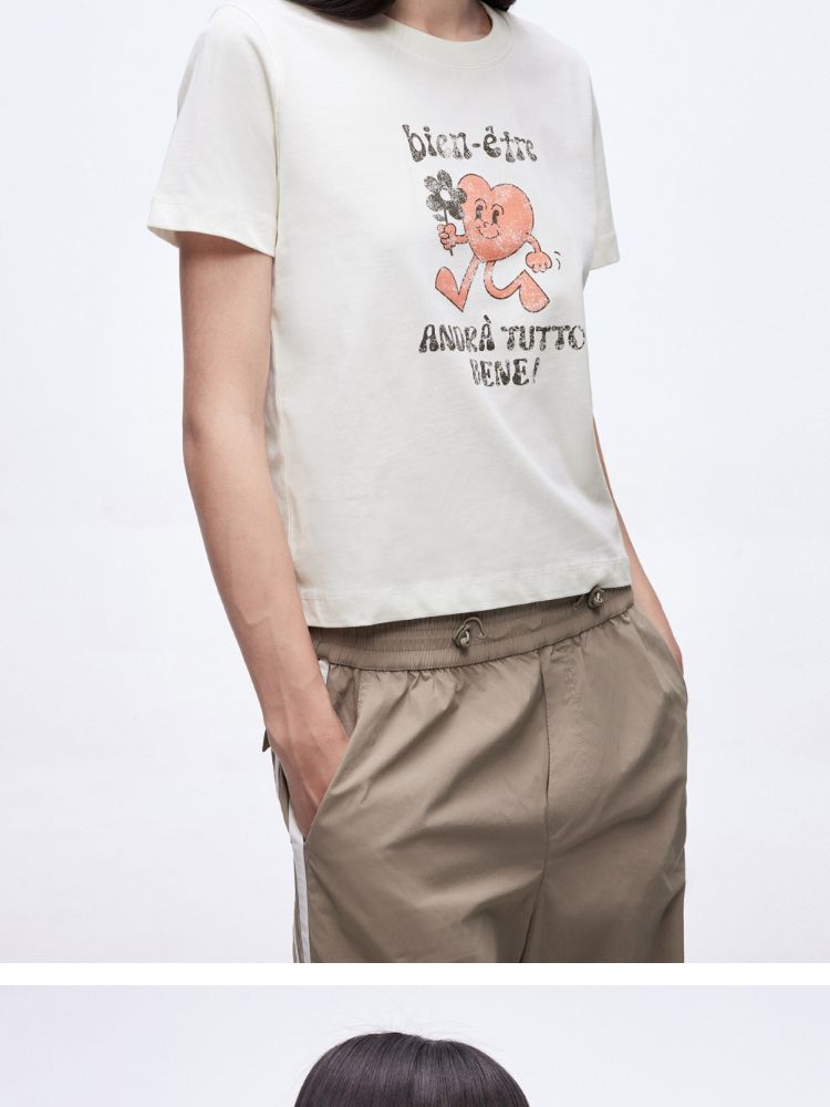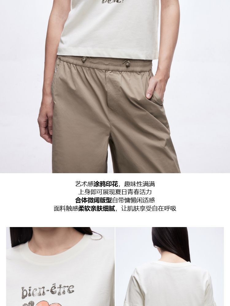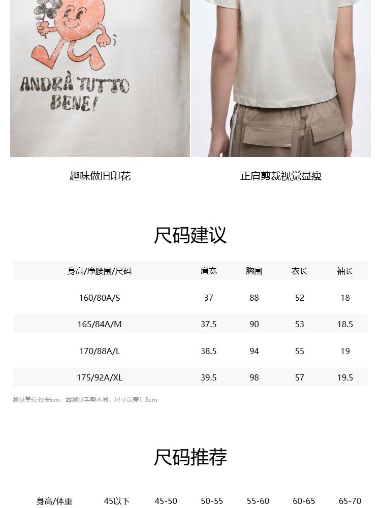 商品名称:【趣味做旧印花】2025夏季纯棉休闲简约圆领纯棉显瘦短袖T恤女 585626