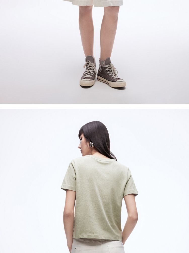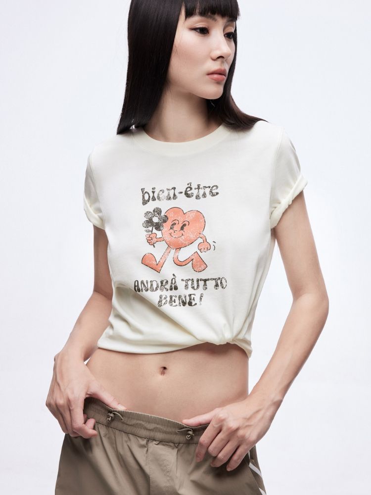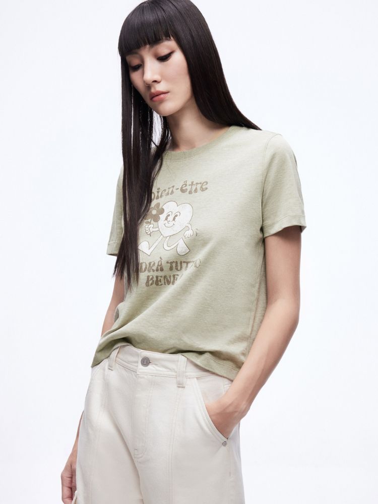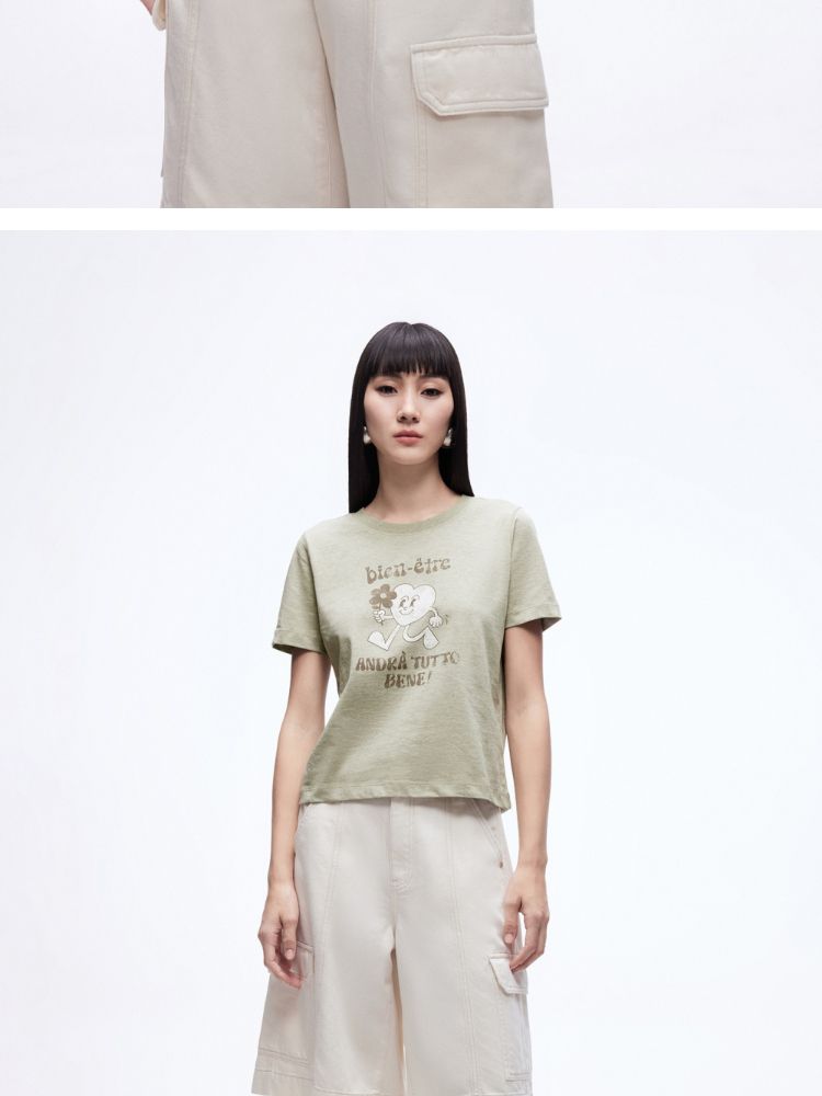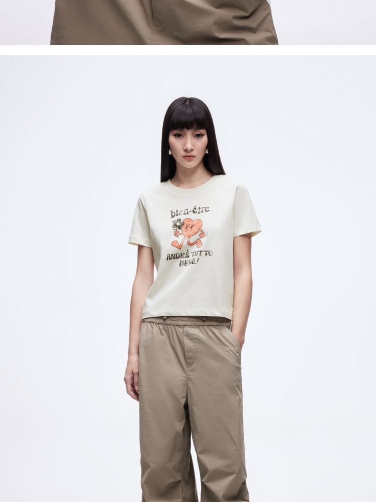 商品名称:【趣味做旧印花】2025夏季纯棉休闲简约圆领纯棉显瘦短袖T恤女 585626
