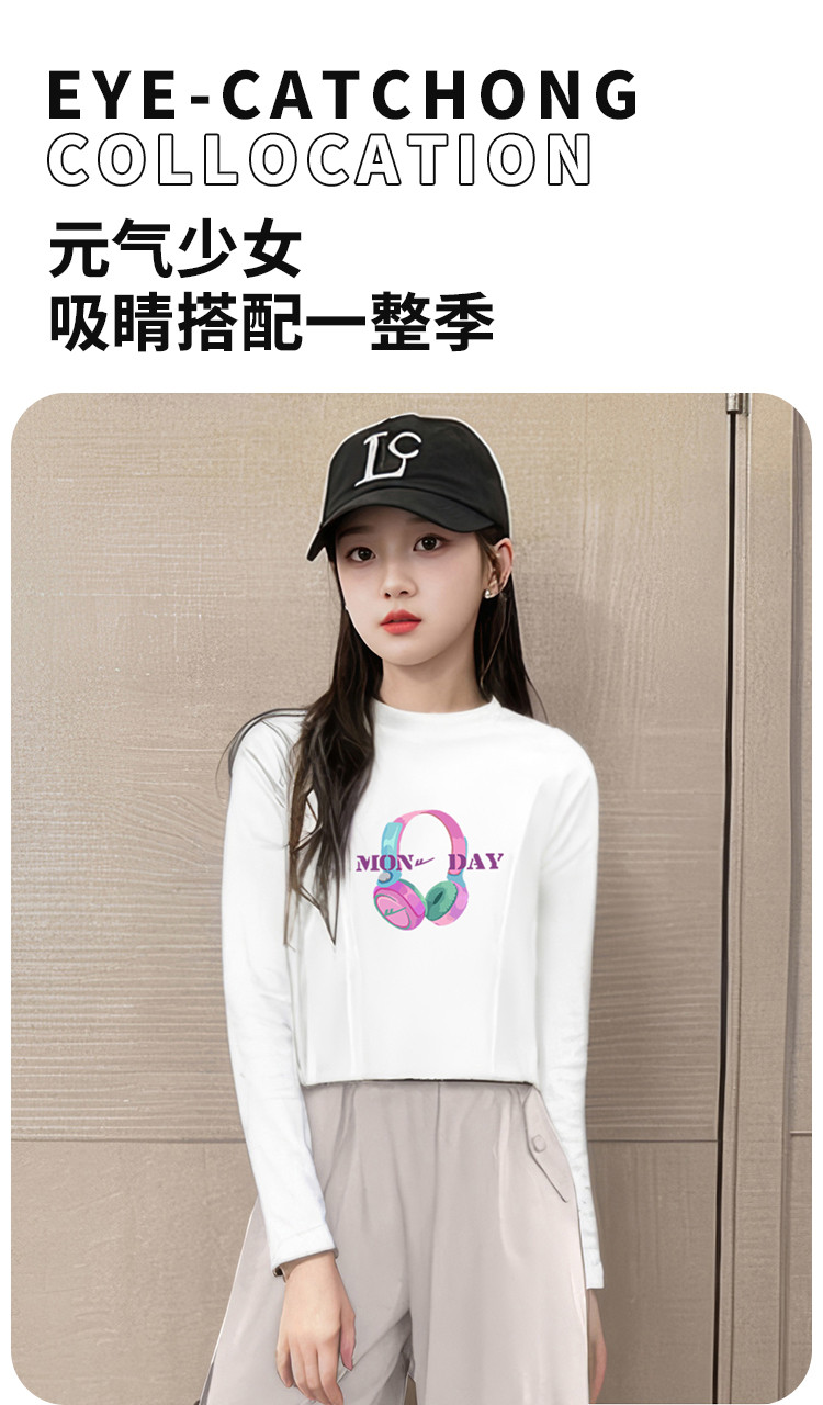 商品名称:童装女童长袖T恤棉质亲肤透气中大童个性印花上衣秋季百搭打底衫 805907