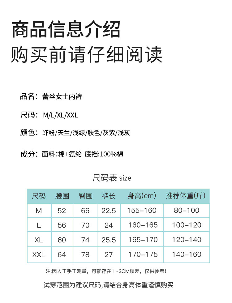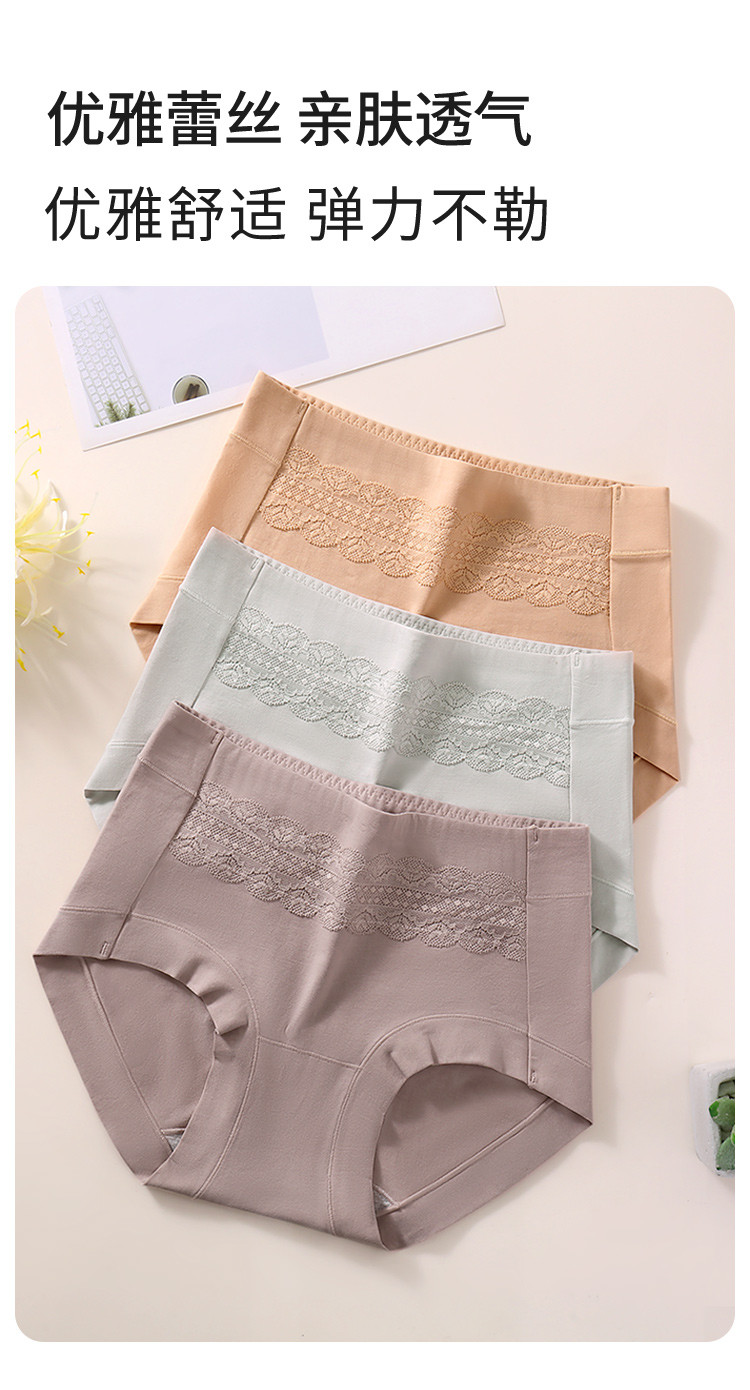 商品名称:【7A抑菌立体包臀】纯棉底档蕾丝中高腰收腹提臀女士内裤3条装 005854