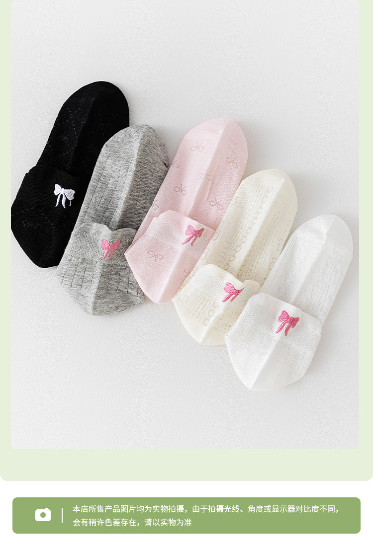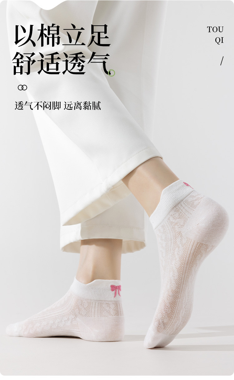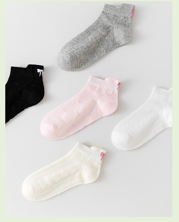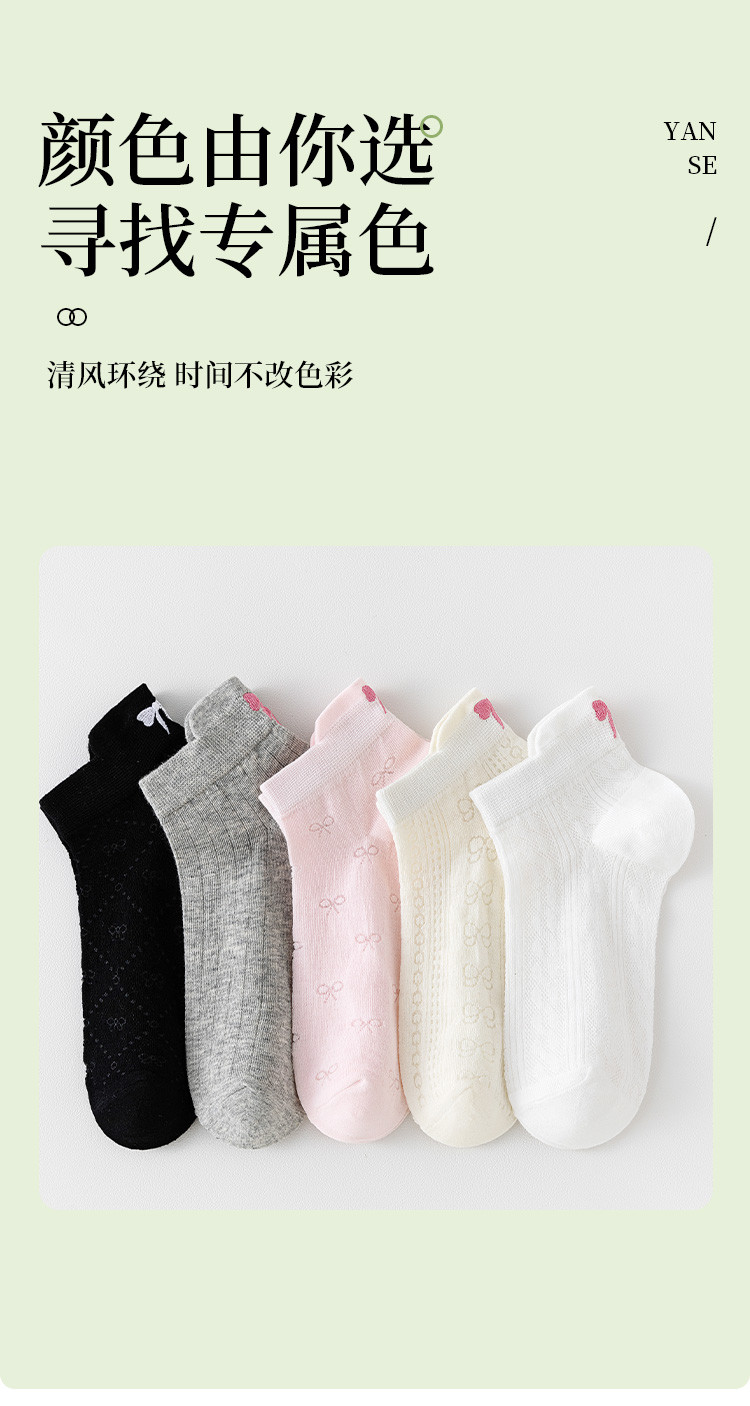 商品名称:【后跟提耳 刺绣蝴蝶结】5双装柔棉短袜夏季薄款透气网眼女袜 041483