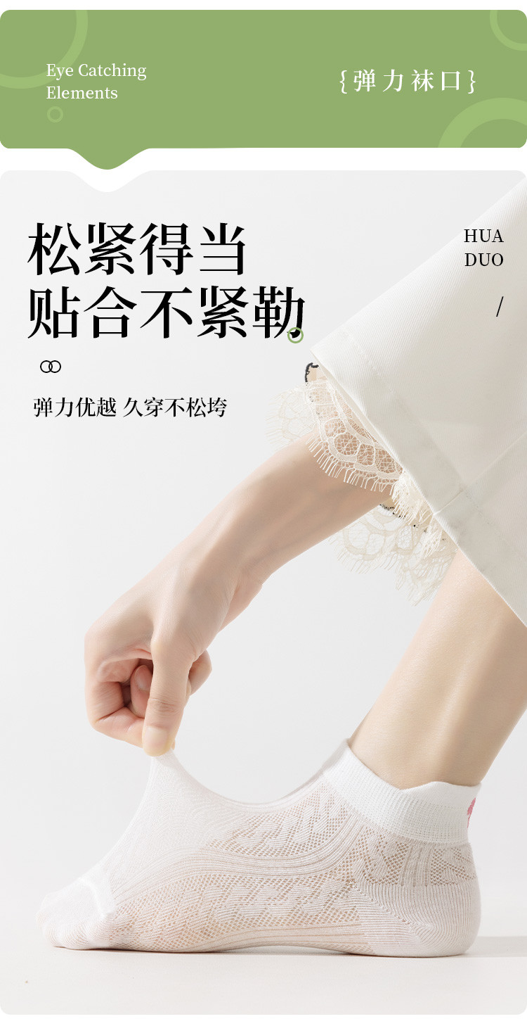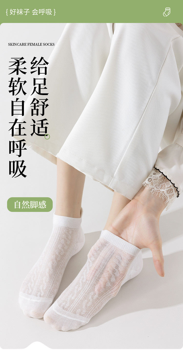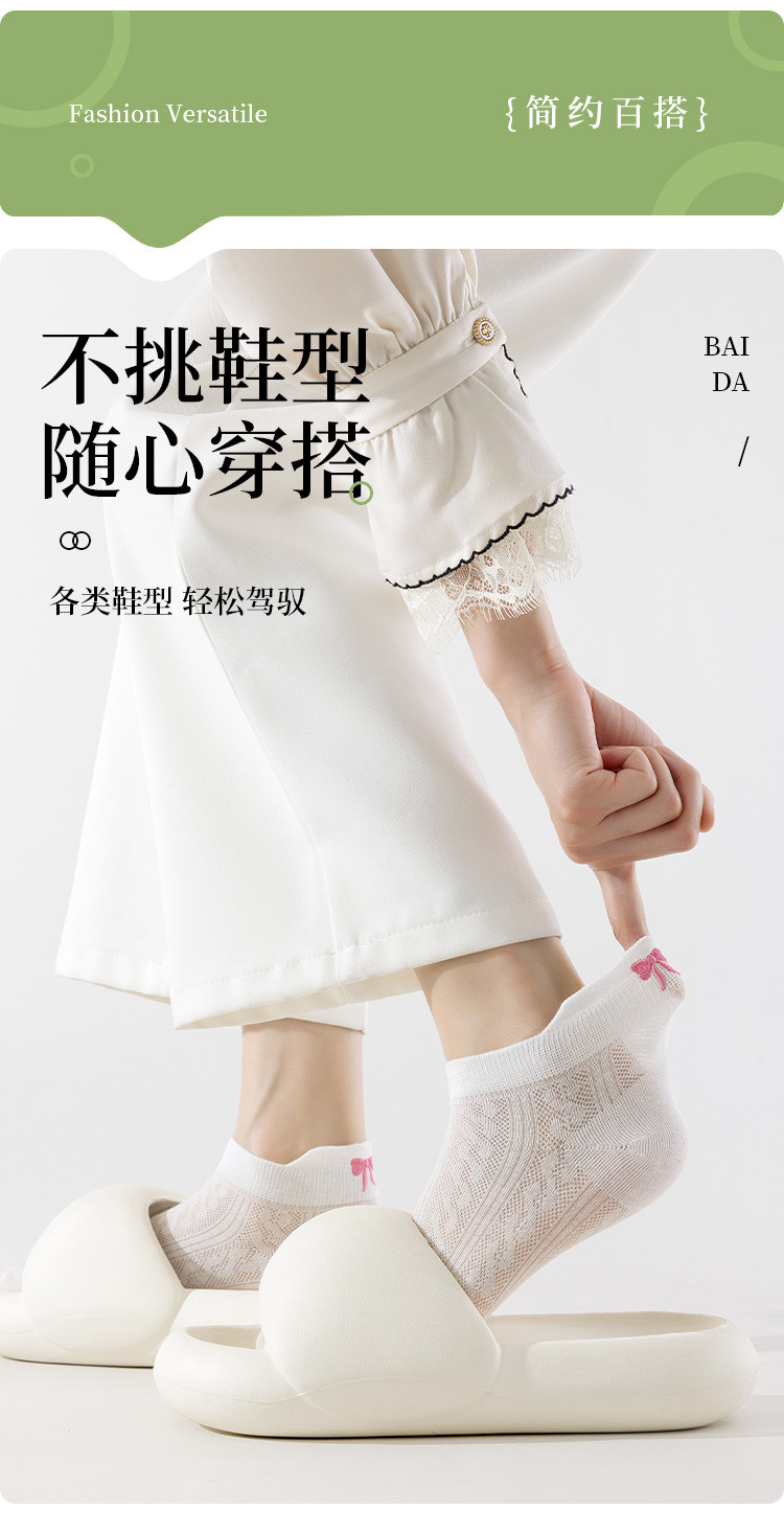 商品名称:【后跟提耳 刺绣蝴蝶结】5双装柔棉短袜夏季薄款透气网眼女袜 041483