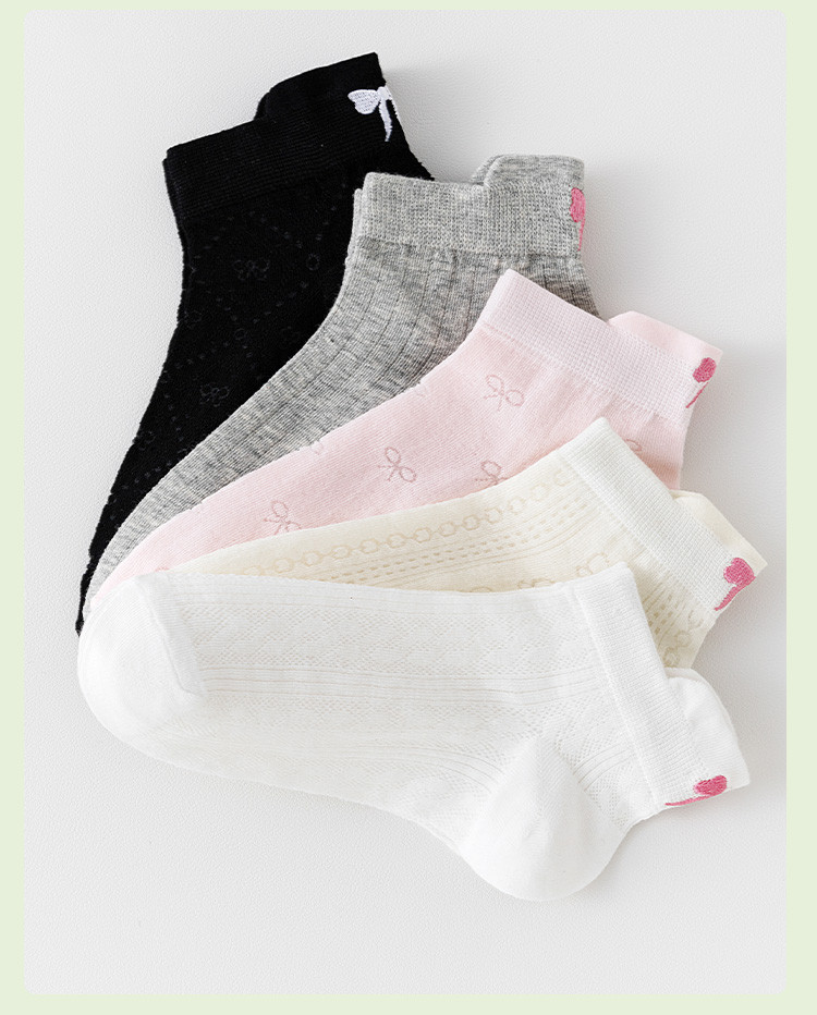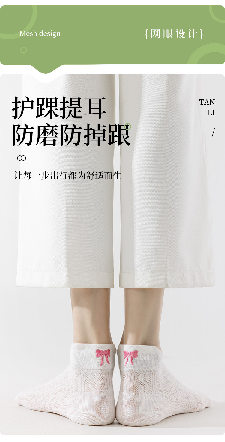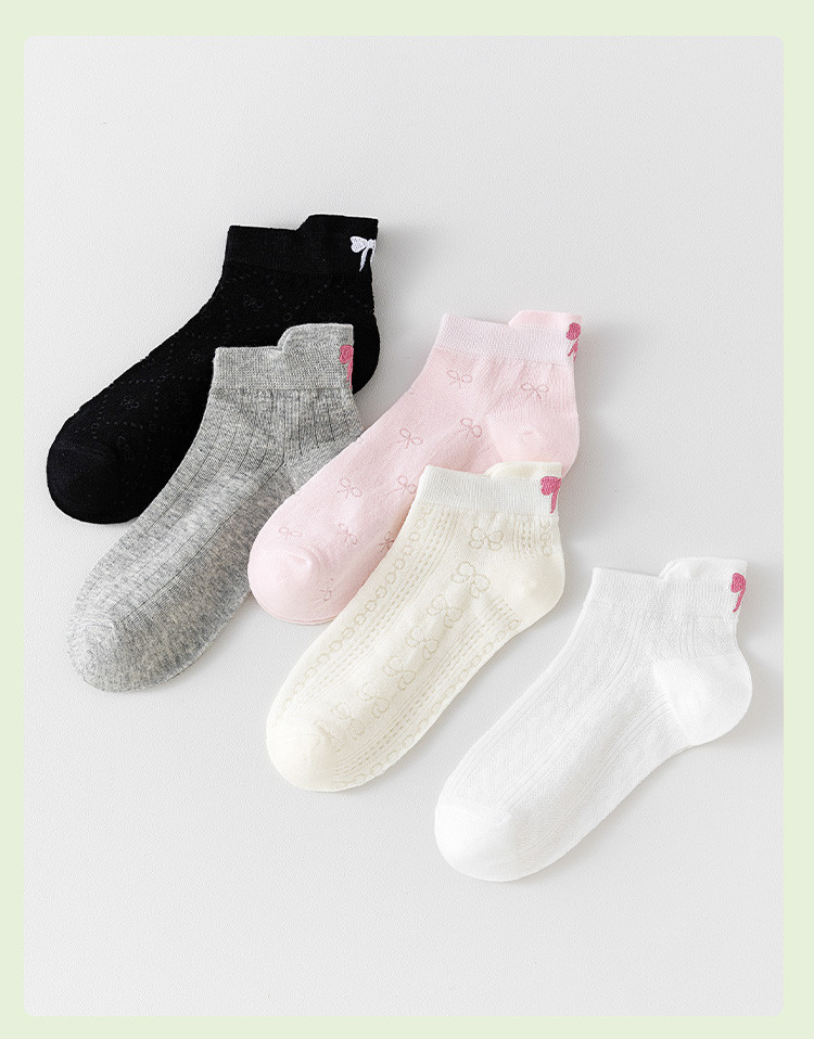 【后跟提耳 刺绣蝴蝶结】5双装柔棉短袜夏季薄款透气网眼女袜 041483