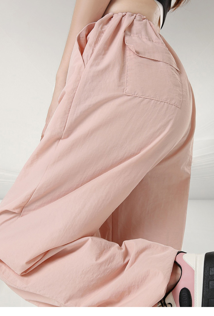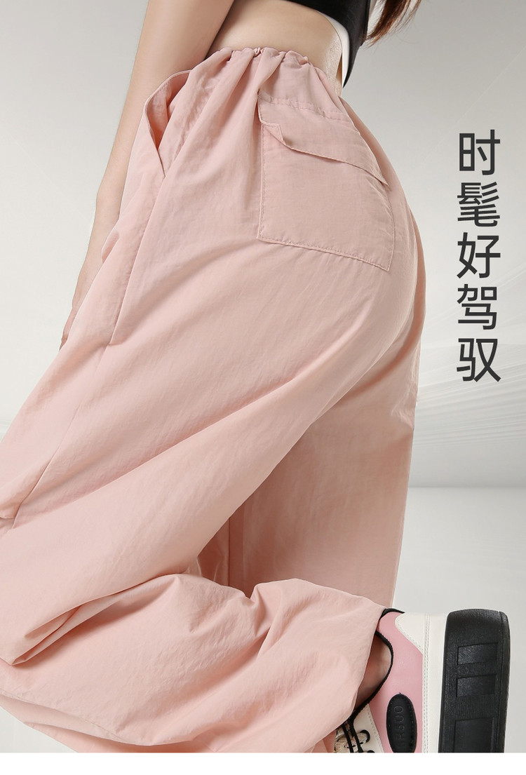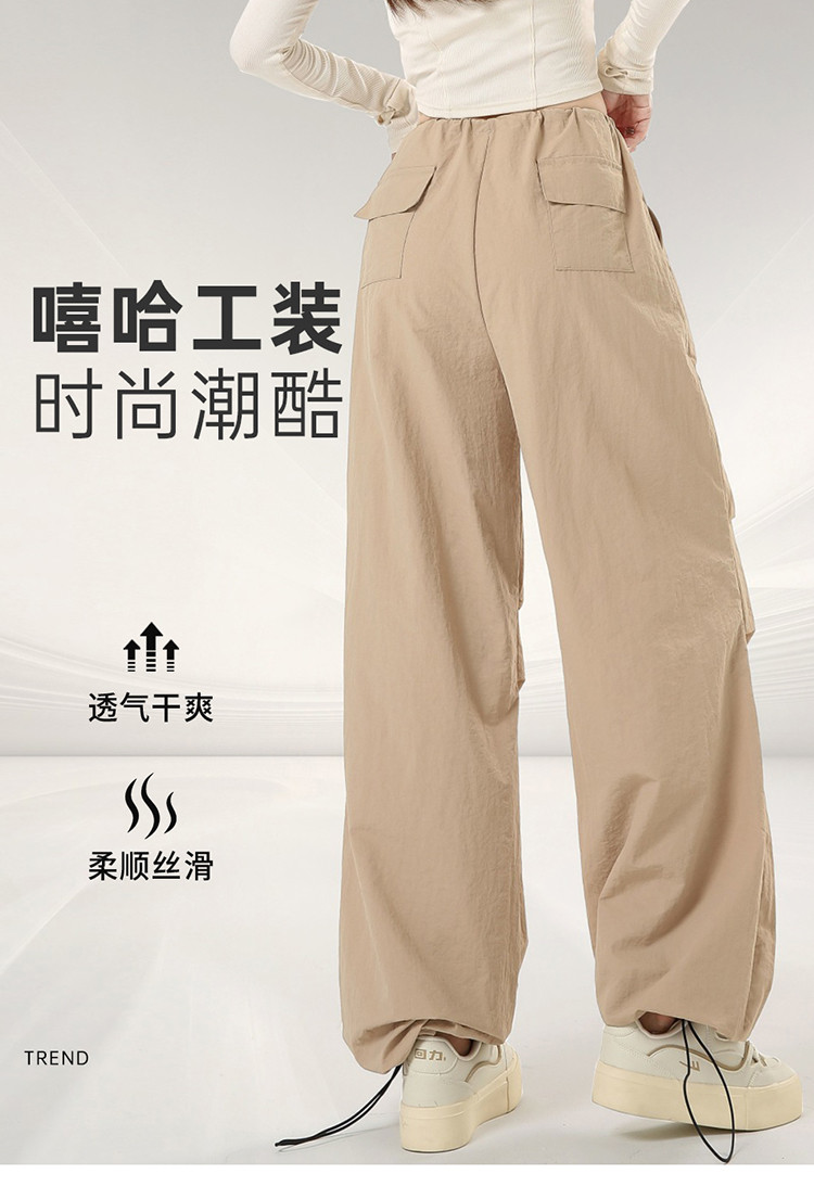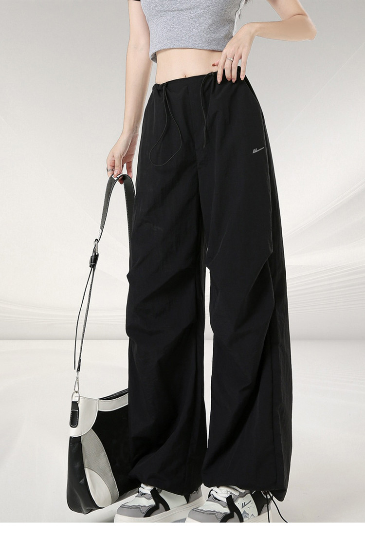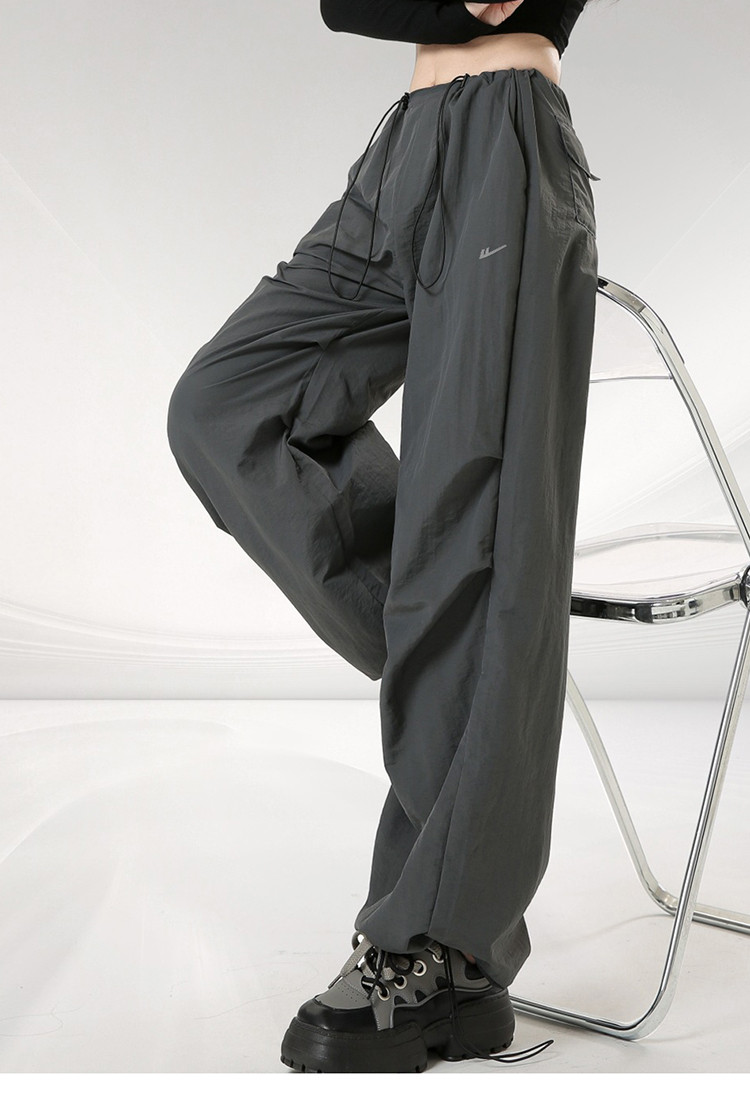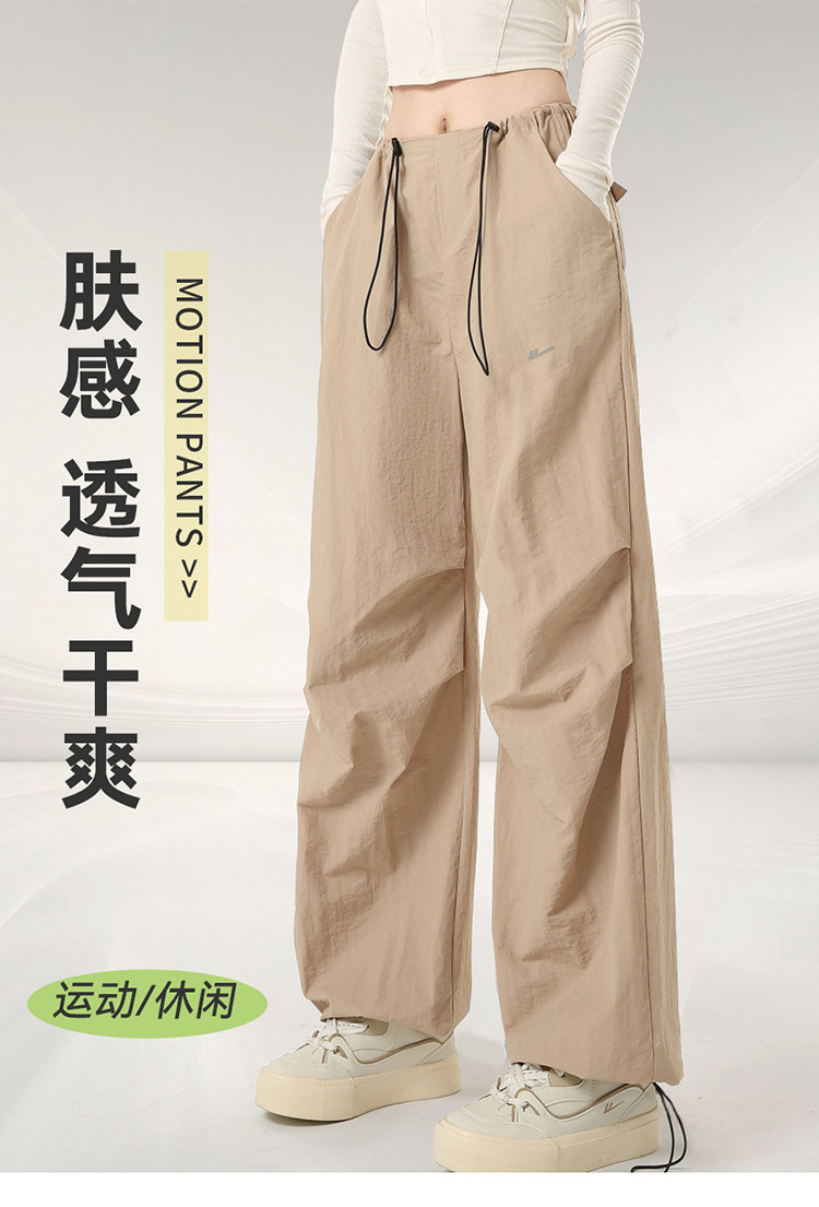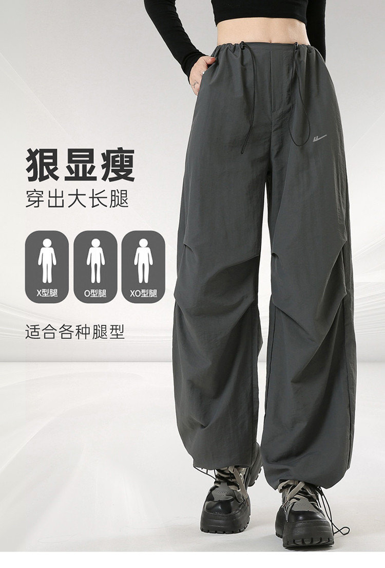 商品名称:【美式工装裤】运动裤女宽松降落伞裤低腰抽绳潮流褶皱直筒阔腿裤 694995