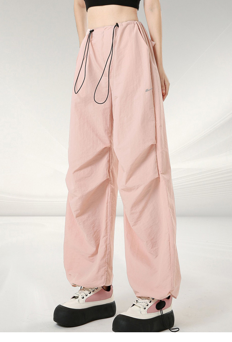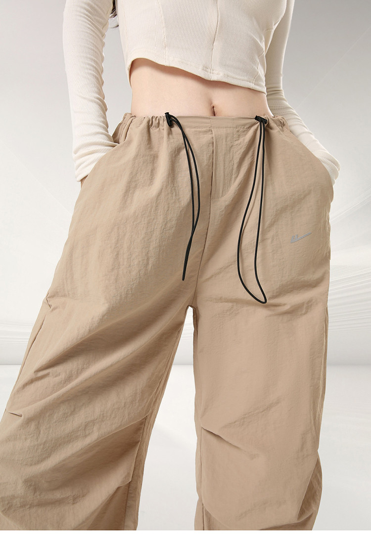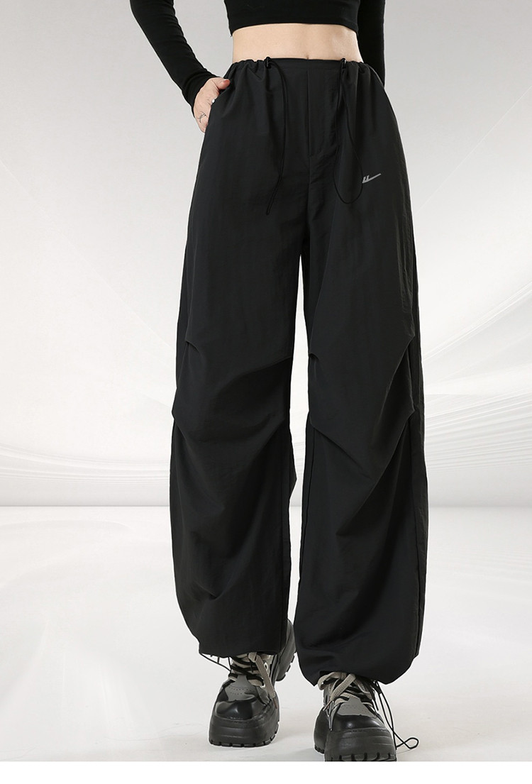 【美式工装裤】运动裤女宽松降落伞裤低腰抽绳潮流褶皱直筒阔腿裤 694995