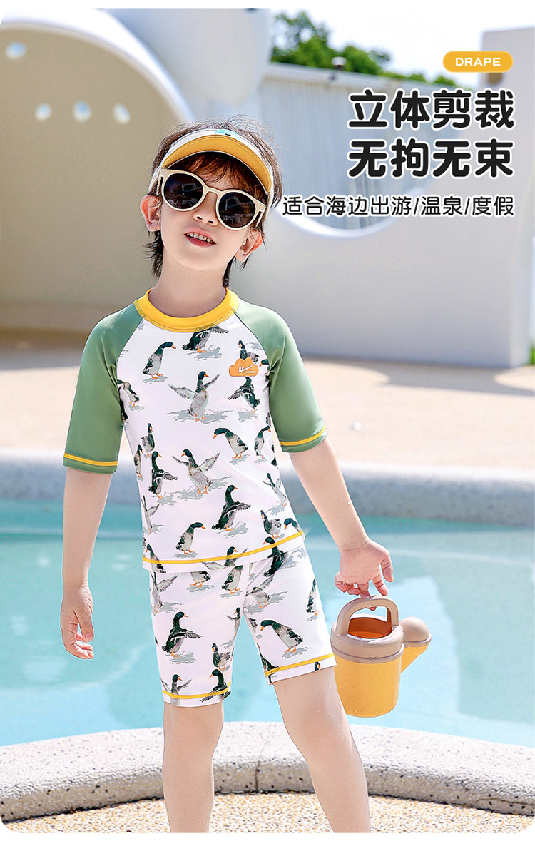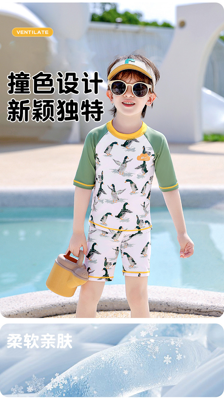儿童分体泳衣男童宝宝婴儿中小童半袖舒适亲肤泡温泉游泳衣套装 854291