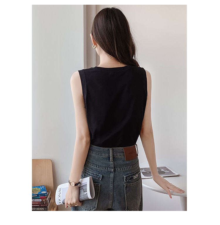 米子旗夏季款大码MM圆领女式背心纯色简约时尚百搭正肩背心 819418