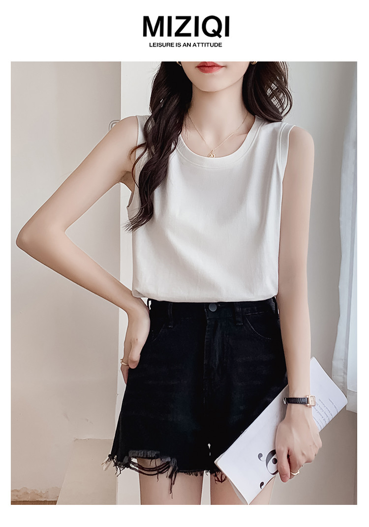 商品名称:米子旗夏季款大码MM圆领女式背心纯色简约时尚百搭正肩背心 819418