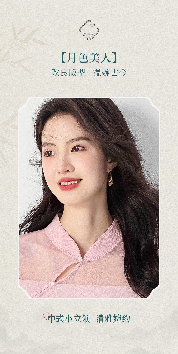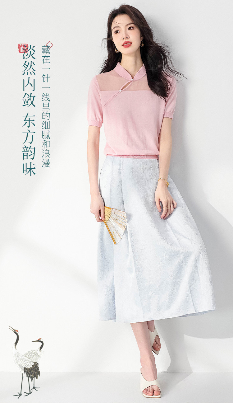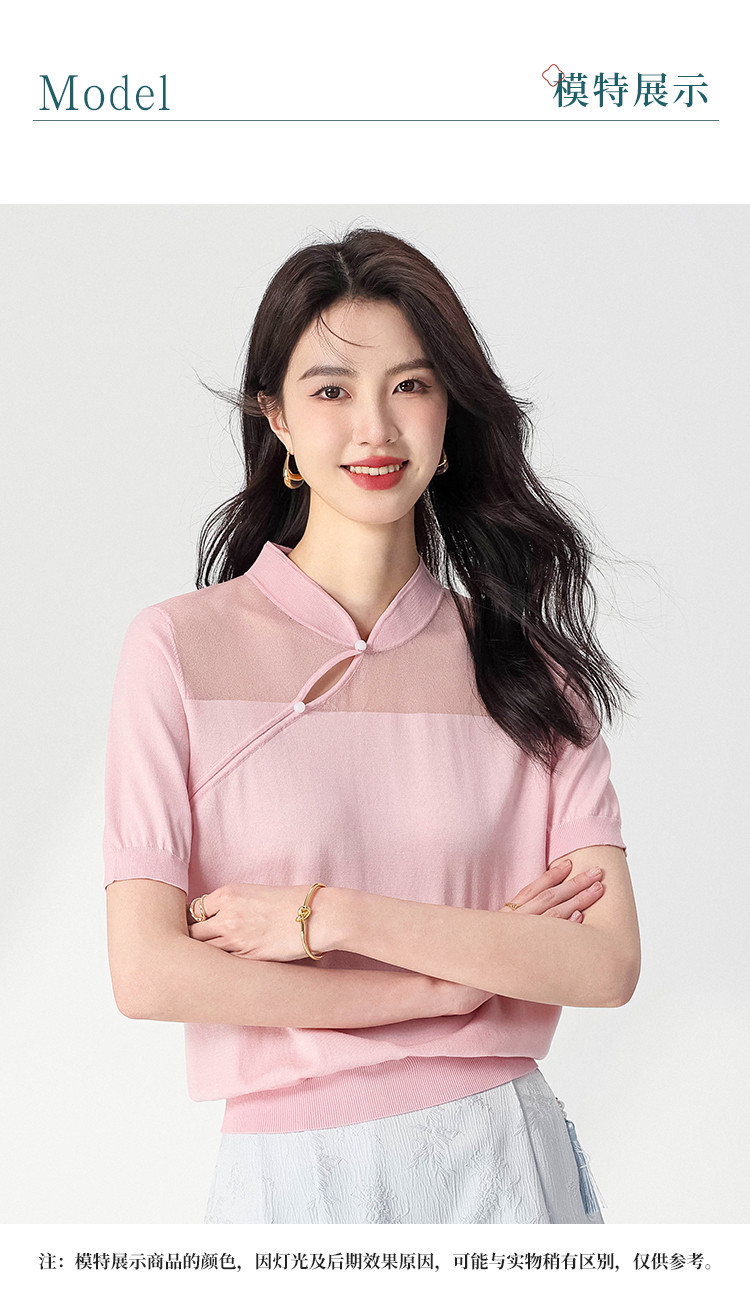 商品名称:【国风】新中式旗袍立领含桑蚕丝纯色针织打底衫短袖T恤女 772243