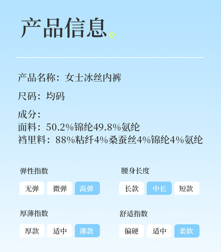 商品名称:【轻薄如面膜】含桑蚕丝抑菌里裆顺滑无痕冰丝女士内裤女薄款 996491