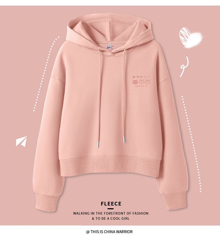 商品名称:【女装】春秋女式连帽外套运动休闲百搭宽松高腰显瘦短款卫衣女 964243