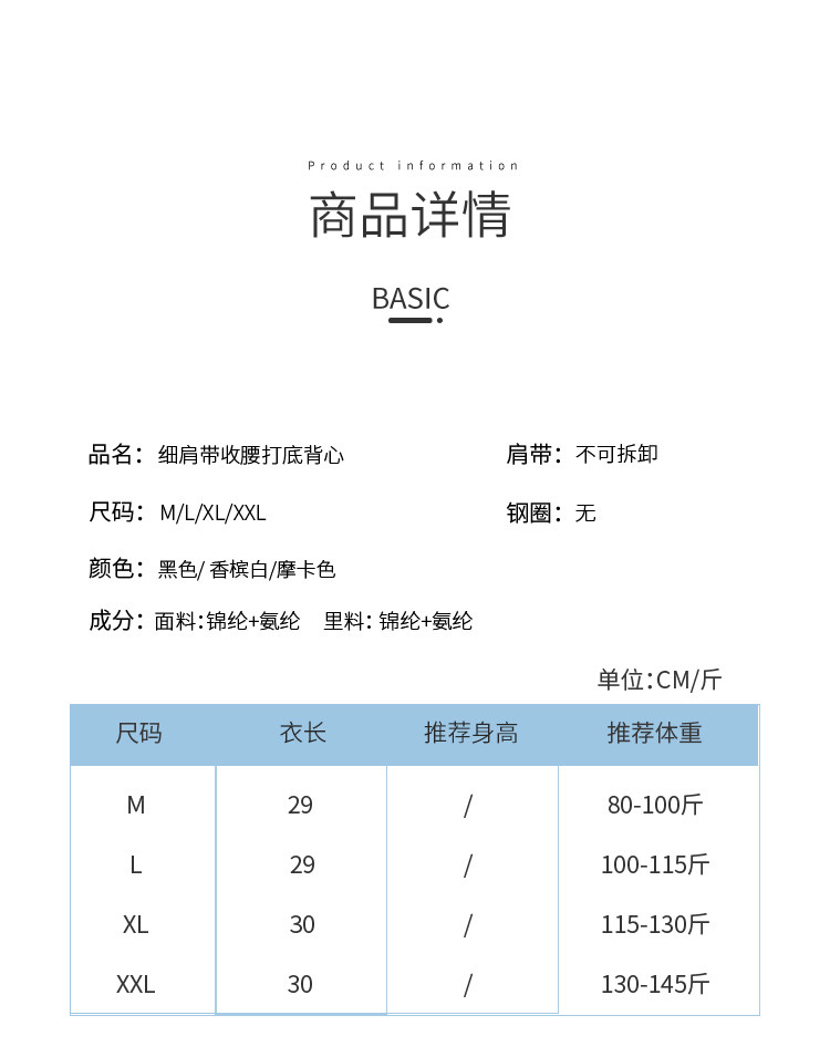 商品名称:【免穿文胸】韩系时尚高级感提拉聚拢打底神器细肩带收腰吊带背心 543710