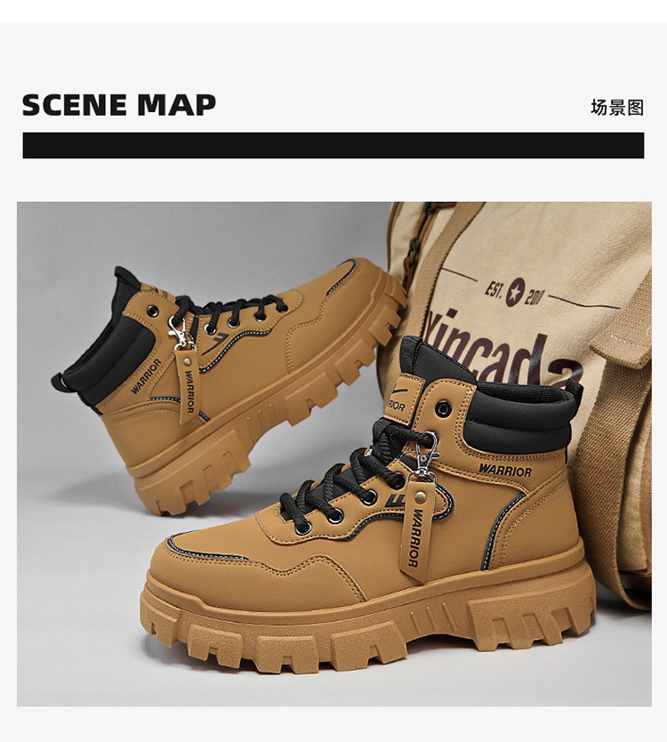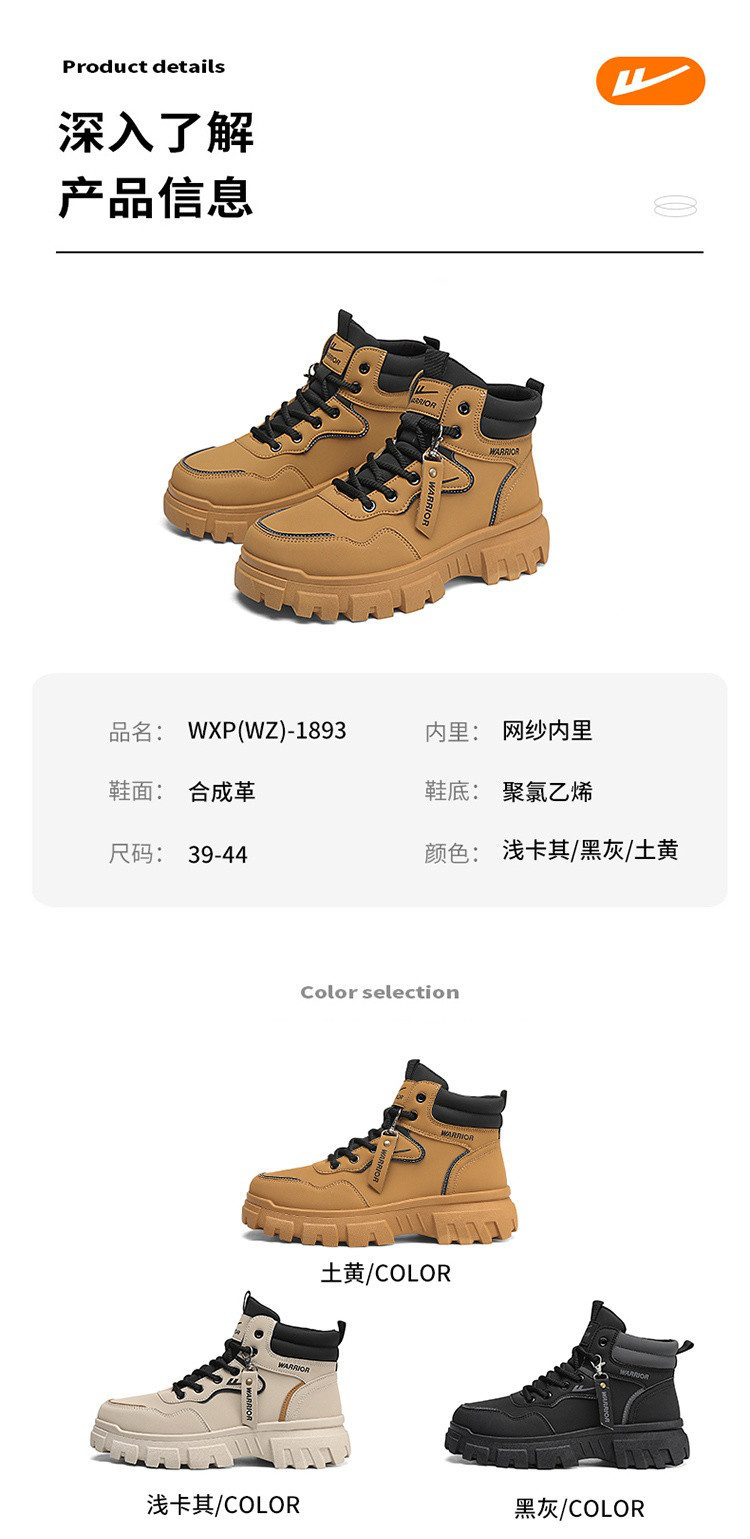 商品名称:【百搭马丁靴】复古潮流工装靴厚底舒适登山鞋耐磨大黄靴中帮男靴 662147