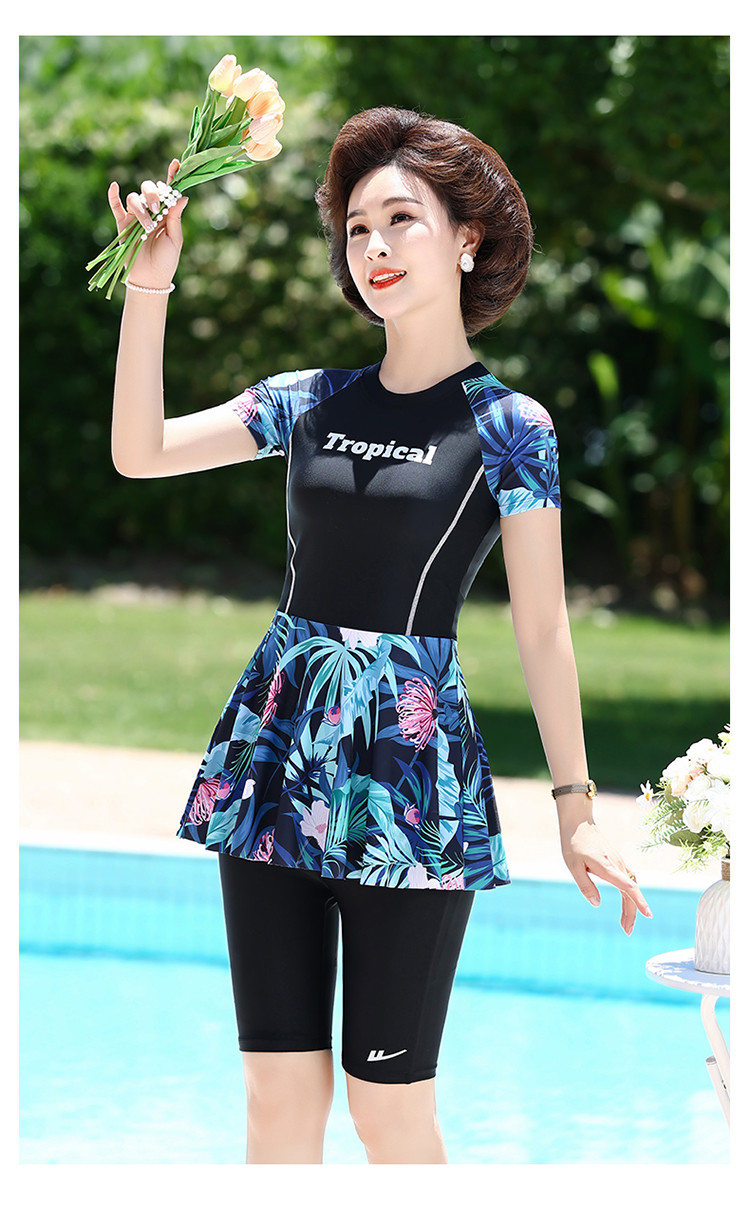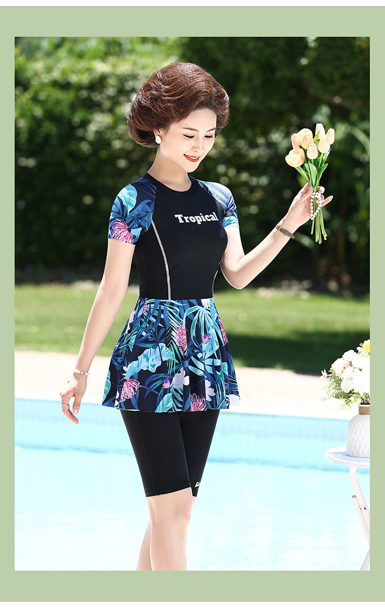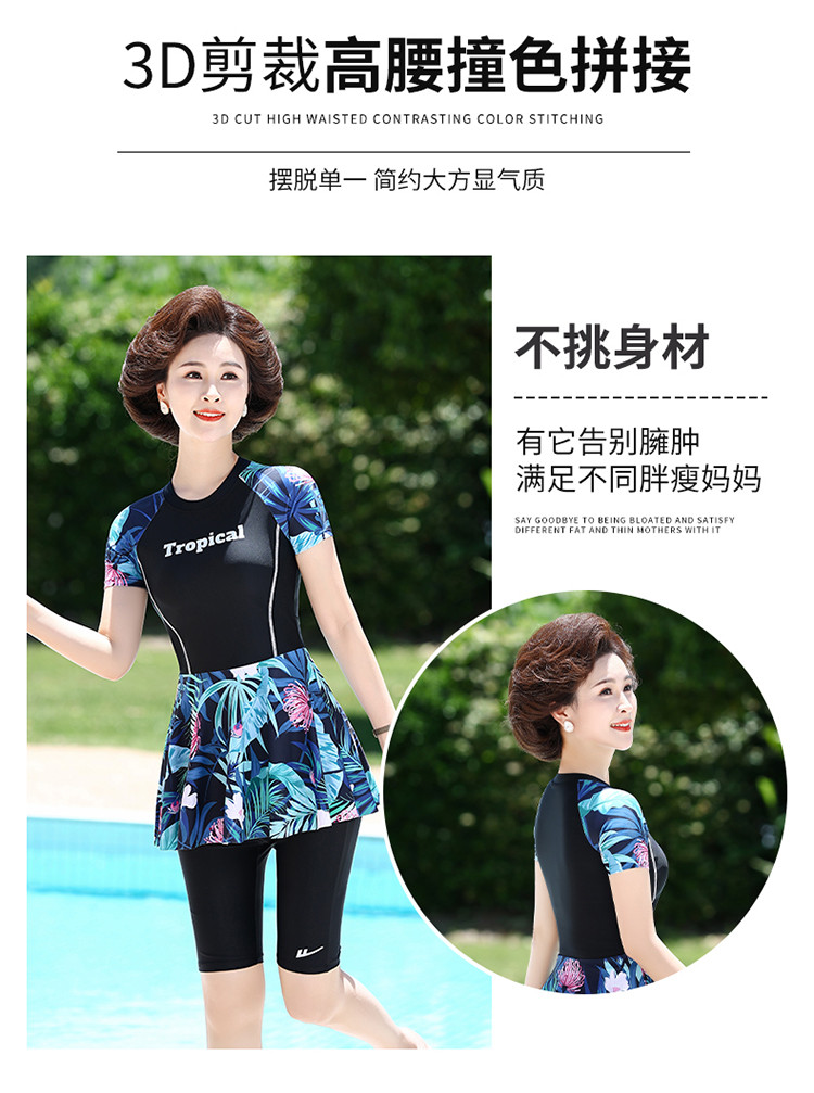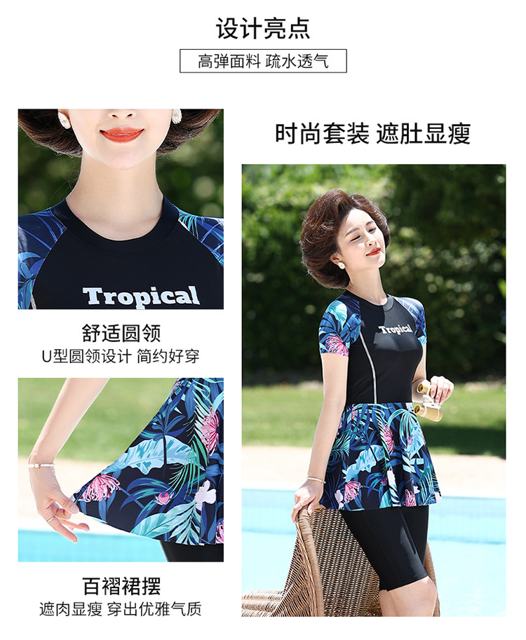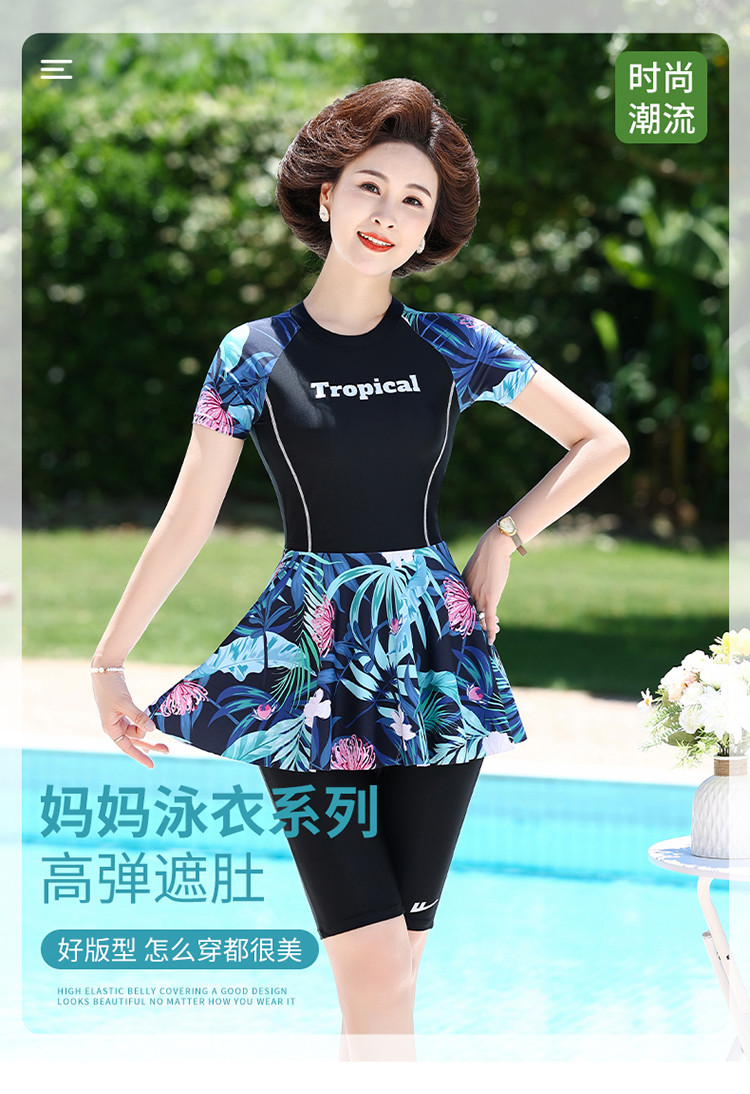 商品名称:妈妈泳衣女舒适夏季分体保守遮肚显瘦中老年大码温泉游泳套装 882963