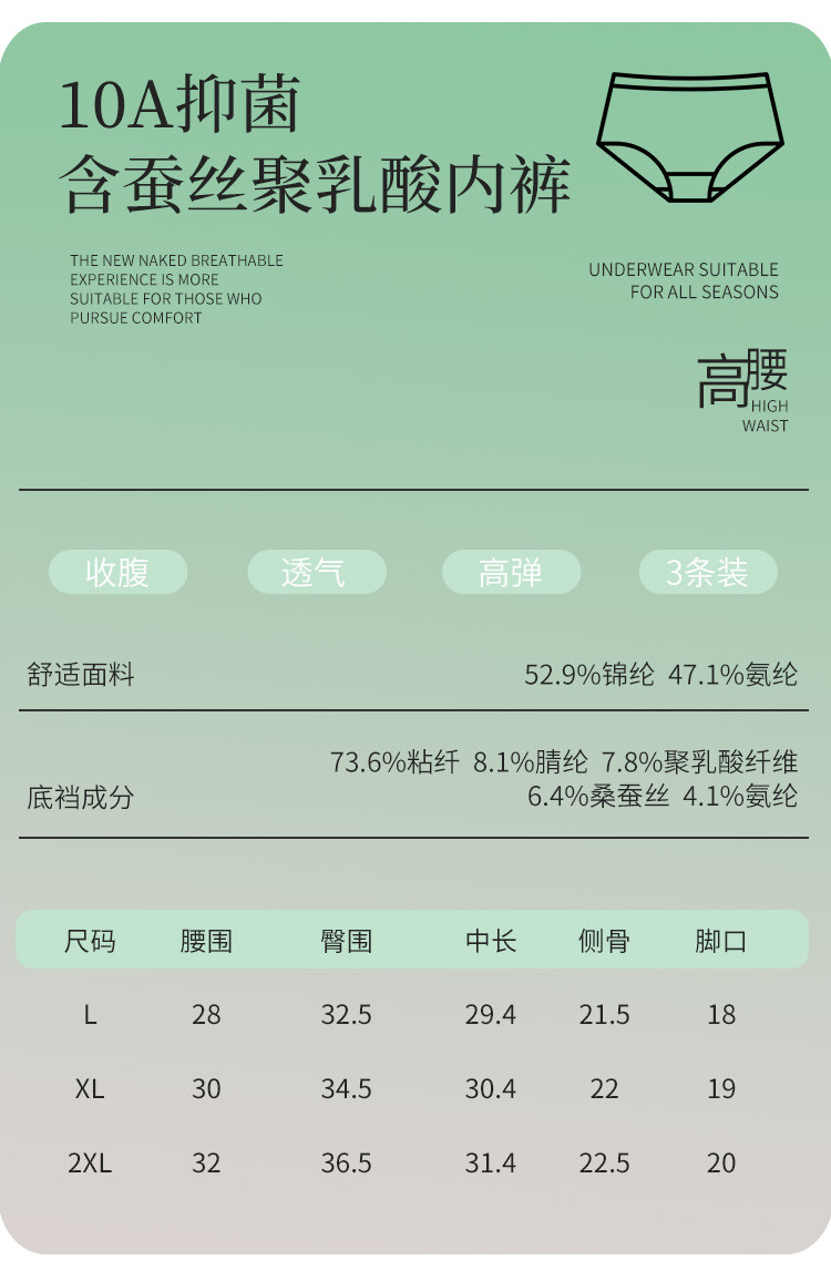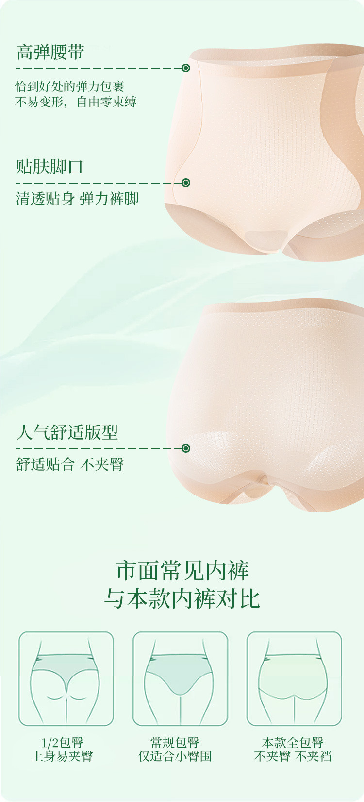 商品名称:【无痕高腰收腹内裤】3条装裸感女士内裤舒适透气提臀三角内裤 753355