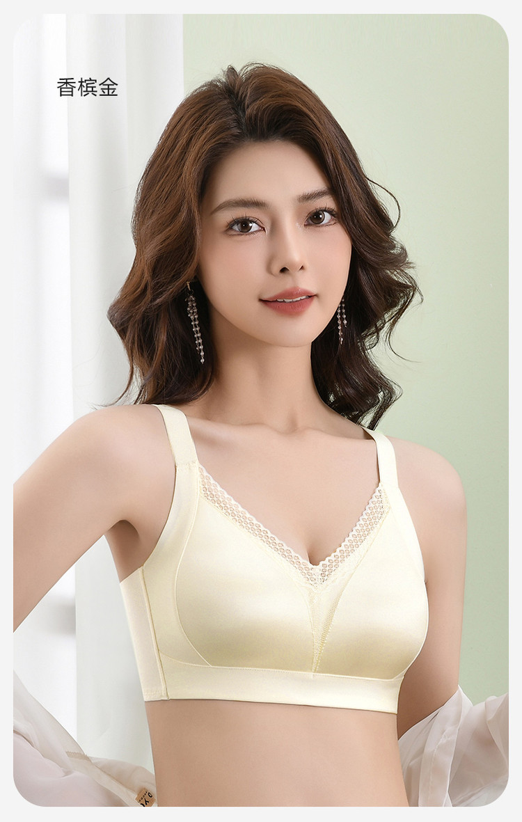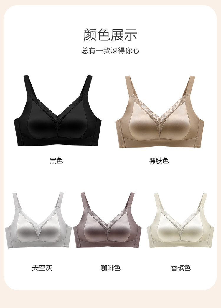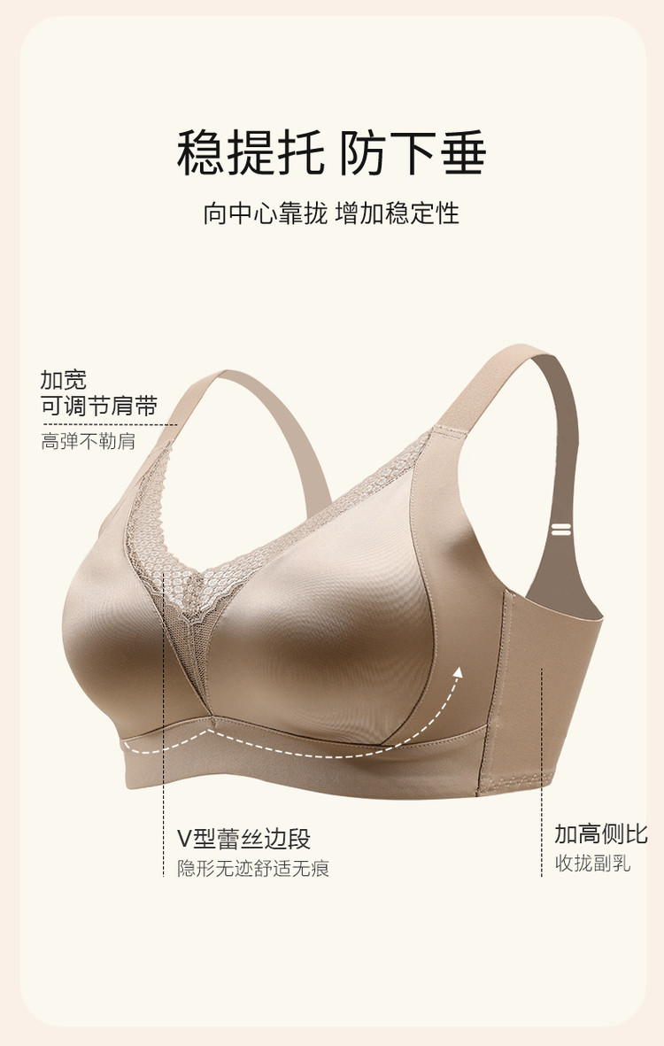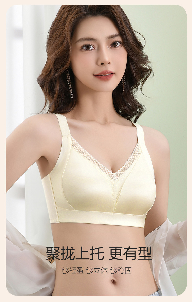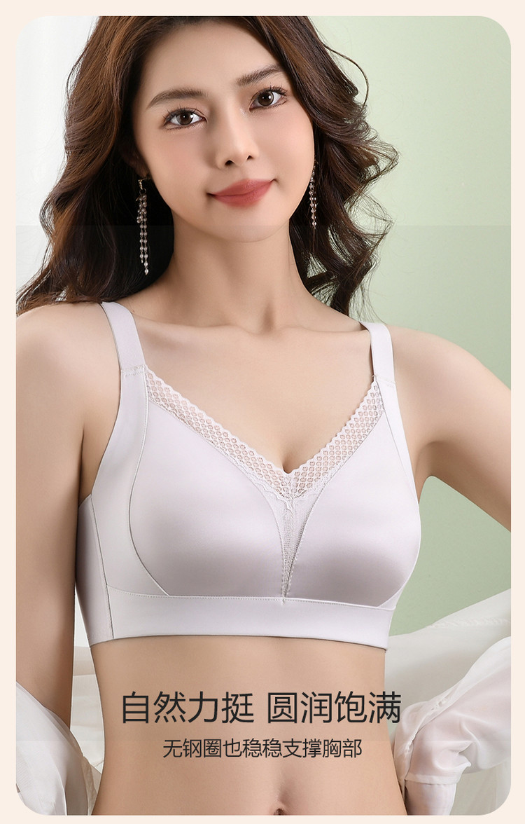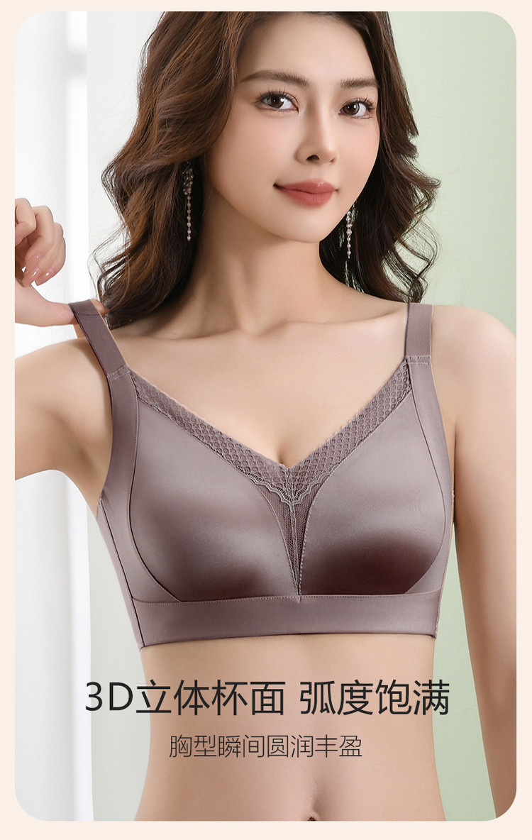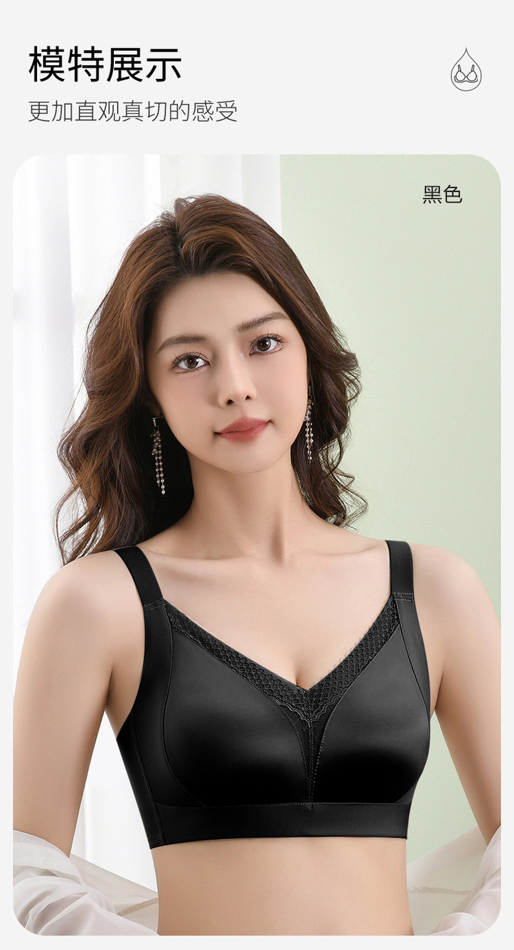 商品名称:【轻奢缎面 蕾丝性感】无钢圈调整型提拉防下垂内衣女士文胸罩 454878